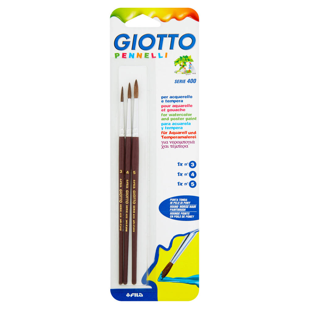 3 Pennelli Giotto per acquerello e tempera, punta tonda misure 3/4/5