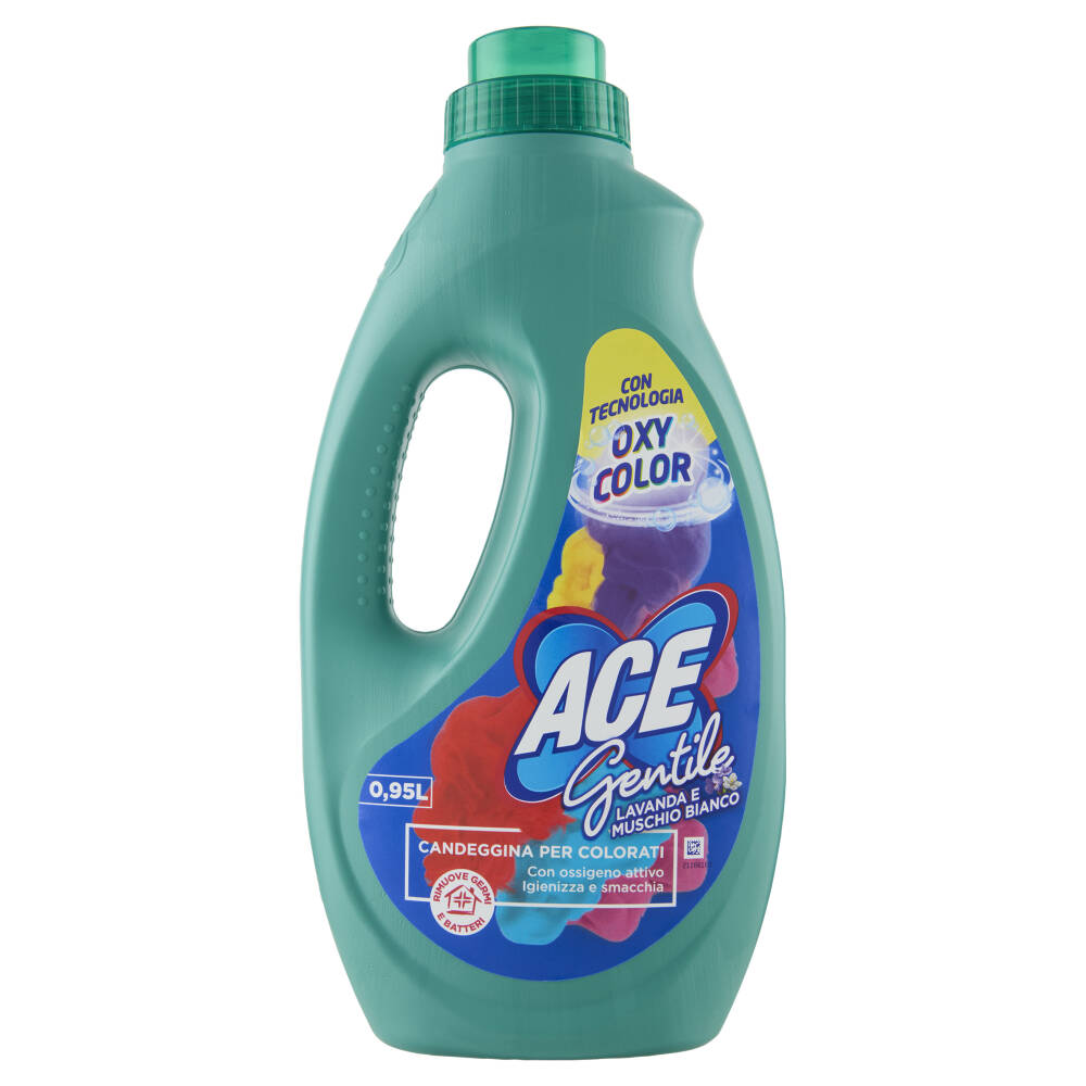 Ace Gentile è la candeggina per i colorati, studiata per essere efficace contro le macchie e sicura per i colori e i tessuti.