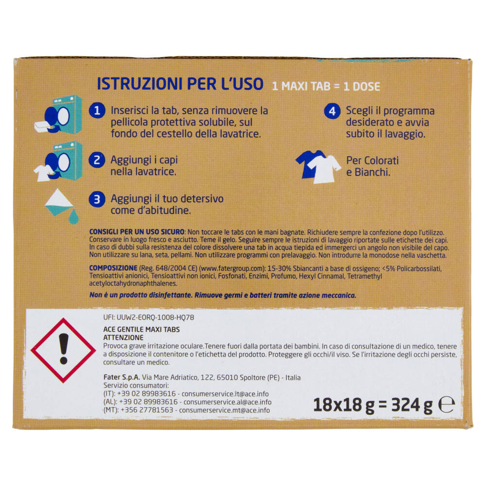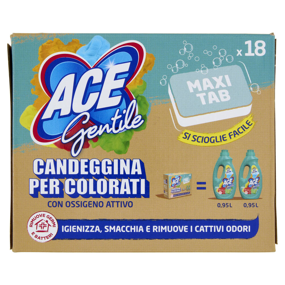 x18 Si scioglie facile Con ossigeno attivo Rimuove germi e batteri Igienizza, smacchia e rimuove i cattivi odori