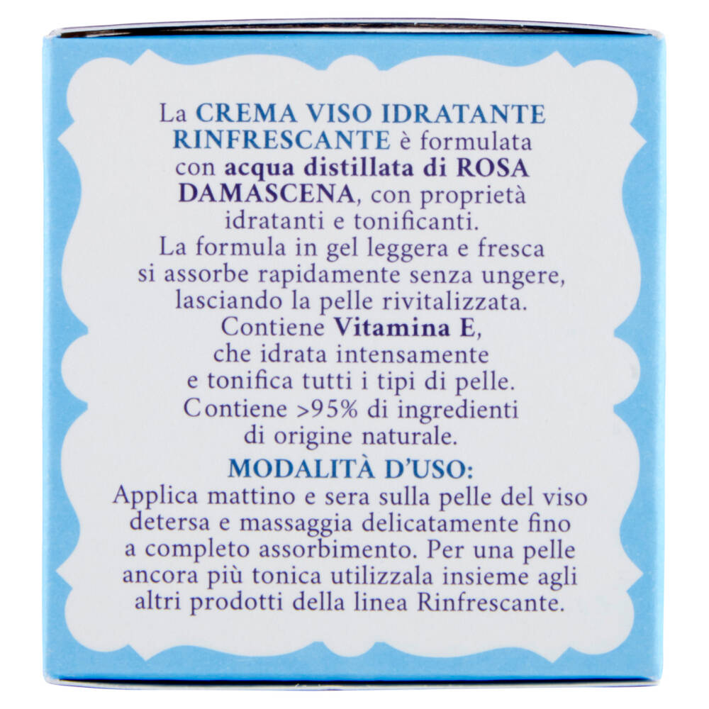 La Crema Viso Idratante Rinfrescante è formulata con acqua distillata di Rosa Damascena, con proprietà idratanti e tonificanti.