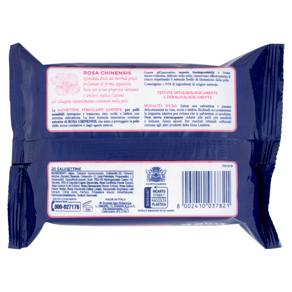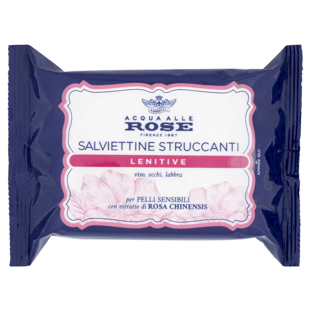 Le Salviettine Struccanti Lenitive per pelli sensibili detergono e leniscono viso, occhi e labbra con estrema delicatezza. Lo loro formula innovativa contiene estratto di Rosa Chinensis, che aiuta a proteggere la pelle dallo stress ossidativo e dagli agenti esterni.
