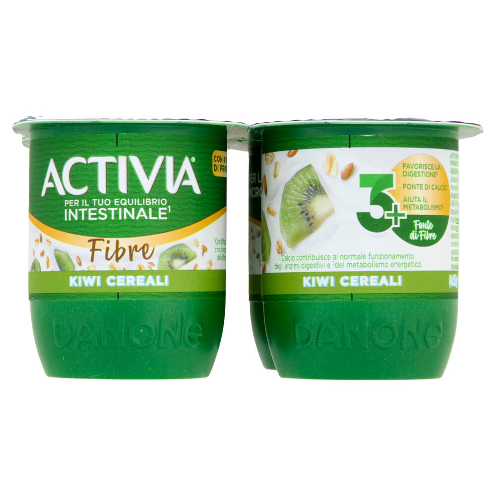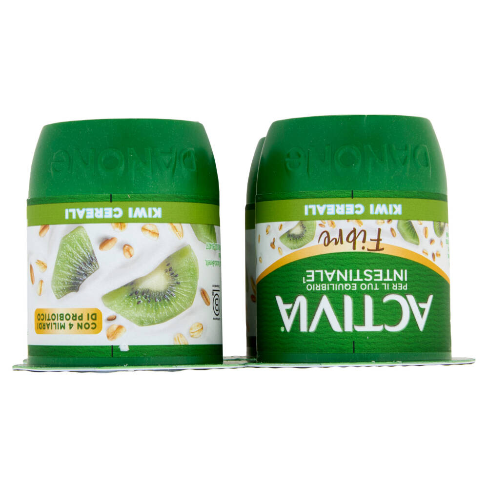 Preparato di kiwi e cereali 17% (acqua, kiwi 30%, oligofruttosio, zucchero, fiocchi di frumento 2%, fiocchi di avena 1,6%, fiocchi di orzo 1,2%, crusca di frumento 1,2%, addensanti: amido modificato, pectina; succo concentrato di limone, minerali del latte, aromi naturali)