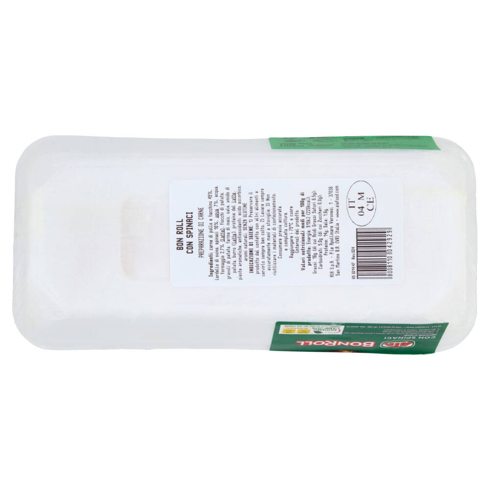 Carne di pollo e tacchino 49% Lardello di suino Spinaci 10% Uova 7% Acqua Formaggio 2,7% (latte) Fiocchi di patata Granuli di patata Farina di mais Sale Amido di patata Burro (latte) Proteine del latte Piante aromatiche Antiossidanti: acido ascorbico Aromi naturali SENZA GLUTINE