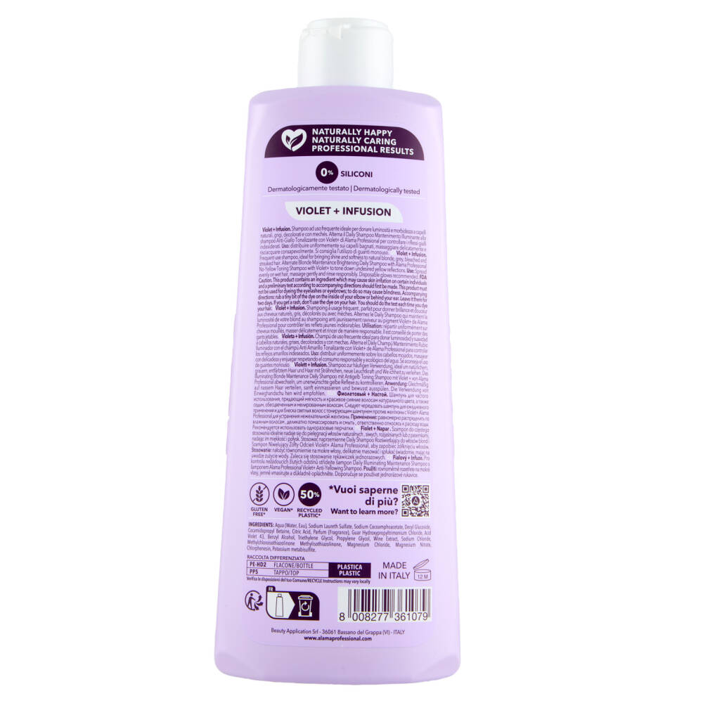 Shampoo ad uso frequente ideale per donare luminosità e morbidezza a capelli naturali, grigi, decolorati e con mechés. Alterna il Daily Shampoo Mantenimento Illuminante allo shampoo Anti-Giallo Tonalizzante con Violet+ di Alama Professional per controllare i riflessi gialli indesiderati.