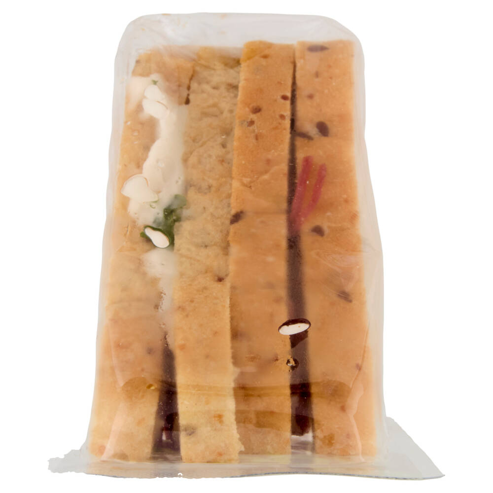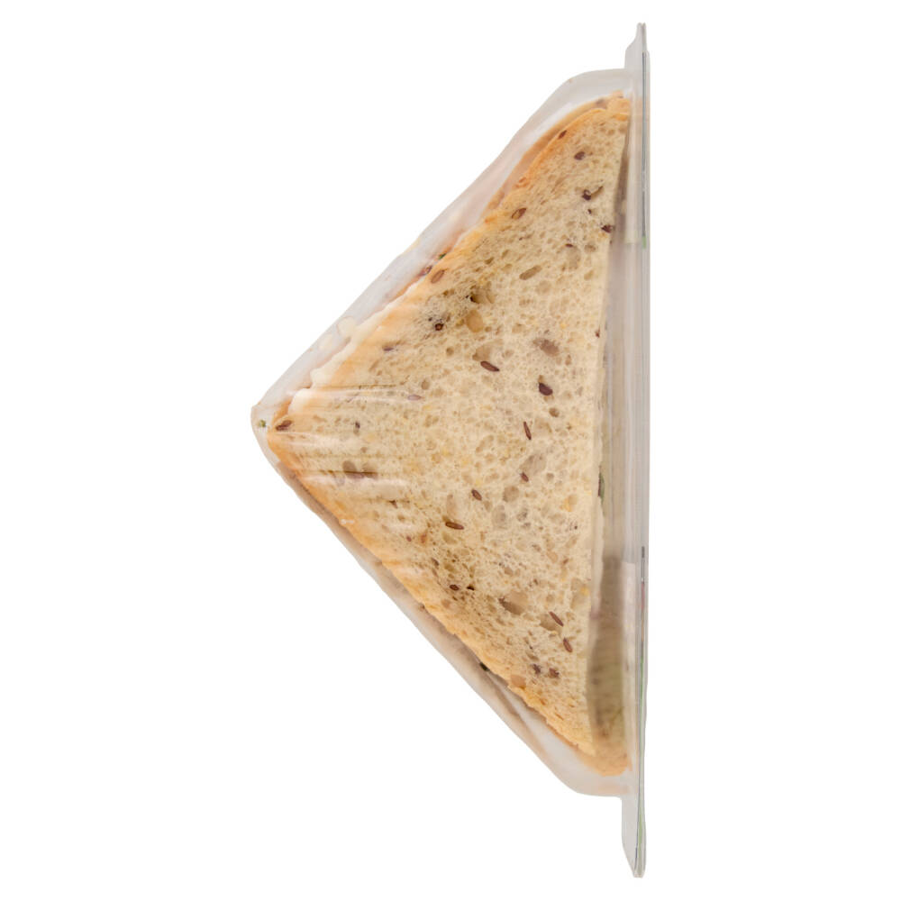 Pane di farina di grano tenero tipo "0" con semi e legumi 53% (farina di grano tenero tipo "0", glutine di frumento, semi di girasole, semi di lino scuro, fiocchi d'avena, grits di ceci germogliati, farina di ceci, sale, lievito madre di frumento in polvere, farina di frumento, antiossidante (E300), enzimi, acqua, olio di semi girasole, lievito)