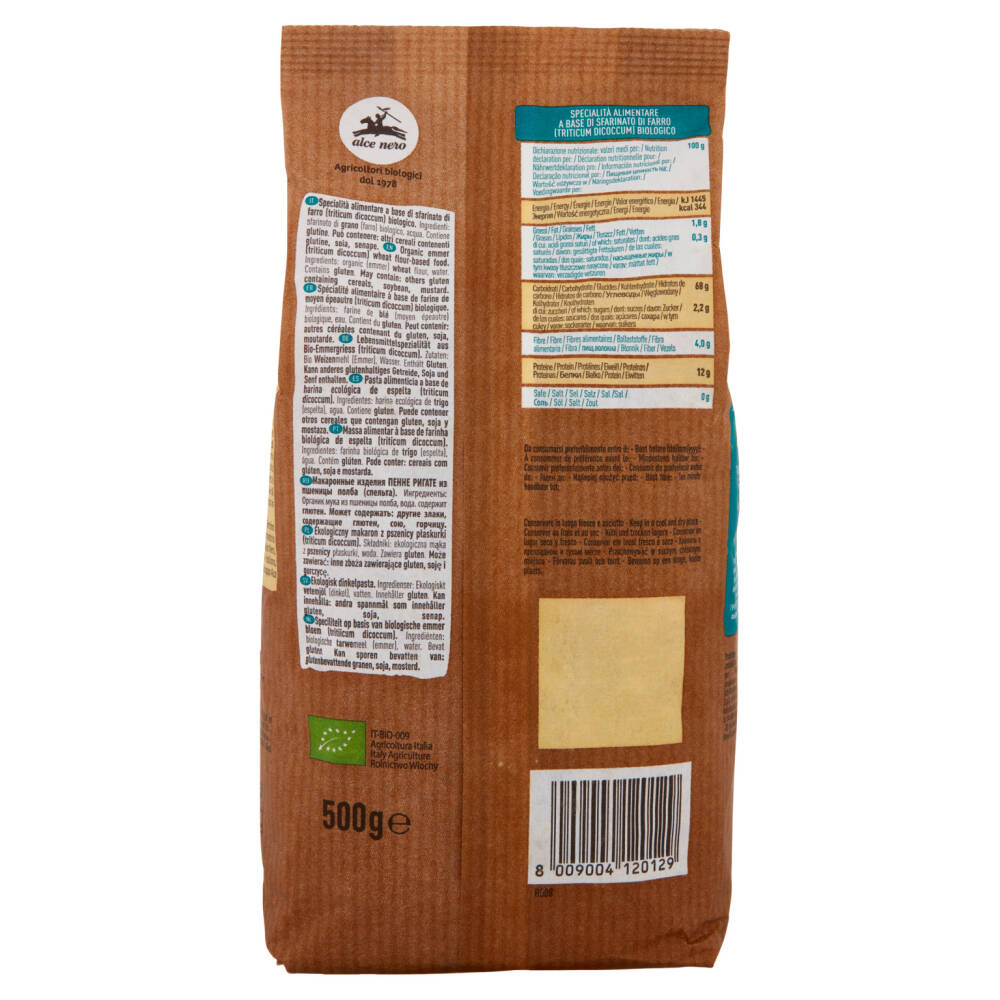 La pasta di farro Alce Nero è prevalentemente realizzata con farro medio o farro Dicocco, così denominato perché contiene di norma 2 cariossidi per spighetta. La semina avviene generalmente in autunno, ma nelle zone di montagna più fredde può essere ritardata fino a primavera inoltrata.