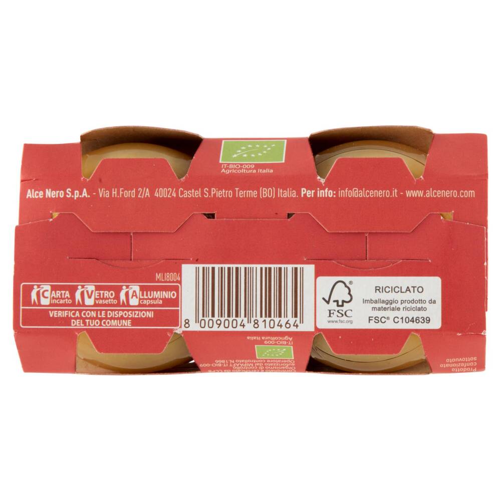 Tipo di coltivazione: nei meleti biologici ogni albero ha più spazio per la crescita e la maturazione dei suoi frutti. Tipo di lavorazione: le mele fresche vengono lavate, tritate e quindi cotte per ottenere una fine purea. I vasetti, infine, confezionati vengono sottoposti ad un trattamento termico per garantire la stabilità nel tempo.