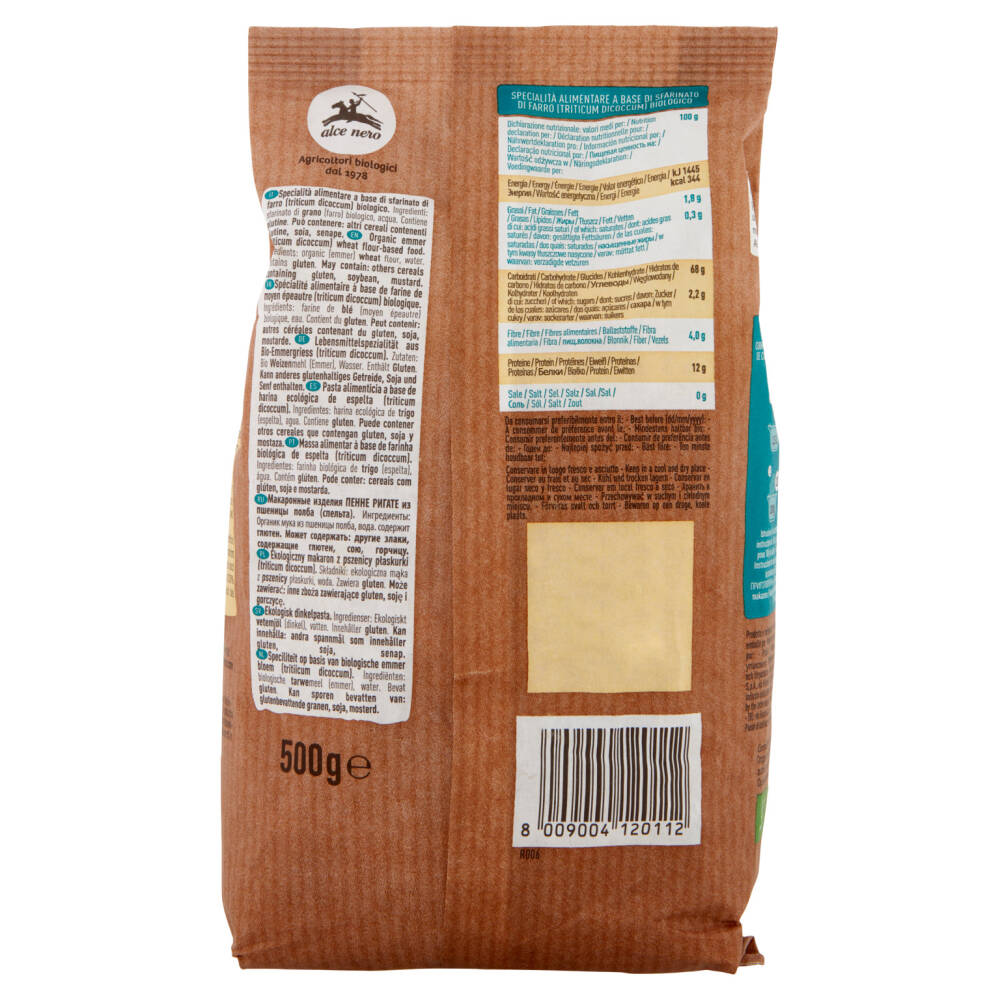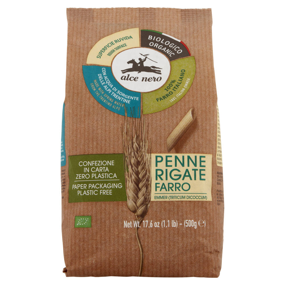 La pasta di farro Alce Nero è prevalentemente realizzata con farro medio o farro Dicocco, così denominato perché contiene di norma 2 cariossidi per spighetta. La semina avviene generalmente in autunno, ma nelle zone di montagna più fredde può essere ritardata fino a primavera inoltrata.