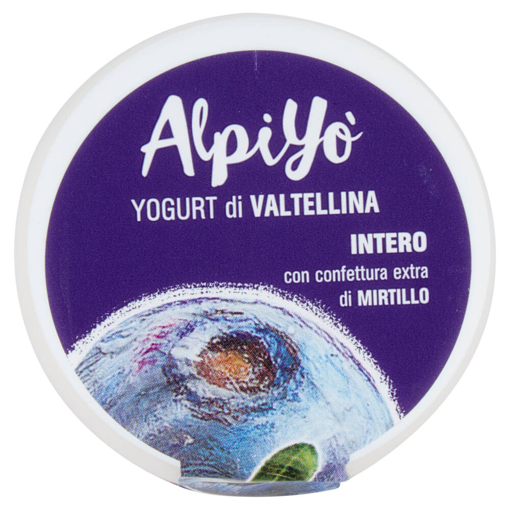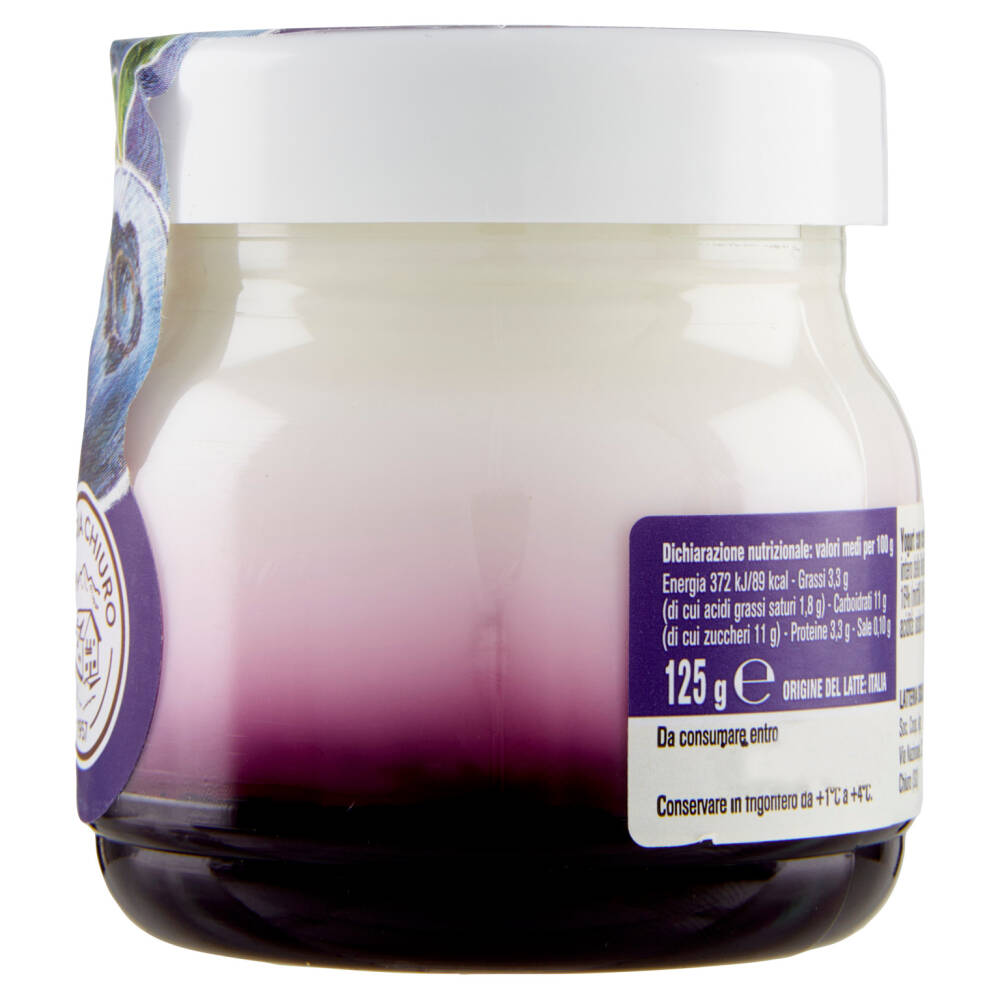 Yogurt (latte fresco pastorizzato intero della Valtellina, fermenti lattici vivi) Confettura extra prodotta in Valtellina di mirtilli 16% (mirtilli 10% sul prodotto finito, zucchero di canna, gelificante: pectina, correttore di acidità: acido citrico)