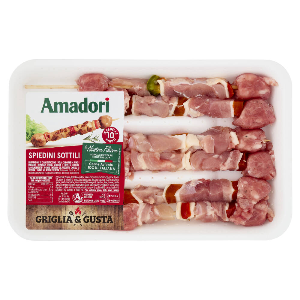 Pollo e suino 61% (carne di tacchino 45%, carne di pollo 19%, carne di suino 18%, acqua, sale iodato: sale, iodato di potassio 0,007%; destrosio, spezie, piante aromatiche, aromi naturali, fibre vegetali: bamboo, lime, limone, patata, carota; correttore di acidità: diacetato di sodio; antiossidante: ascorbato di sodio; amido di patata, budello edibile -alginato di sodio-)