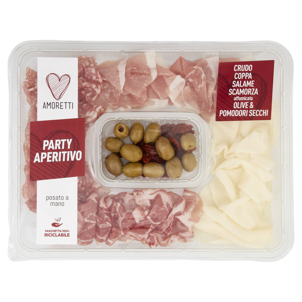 Amoretti Party Aperitivo Crudo, Coppa, Salame, Scamorza affumicata, Olive & Pomodori Secchi 320 g
