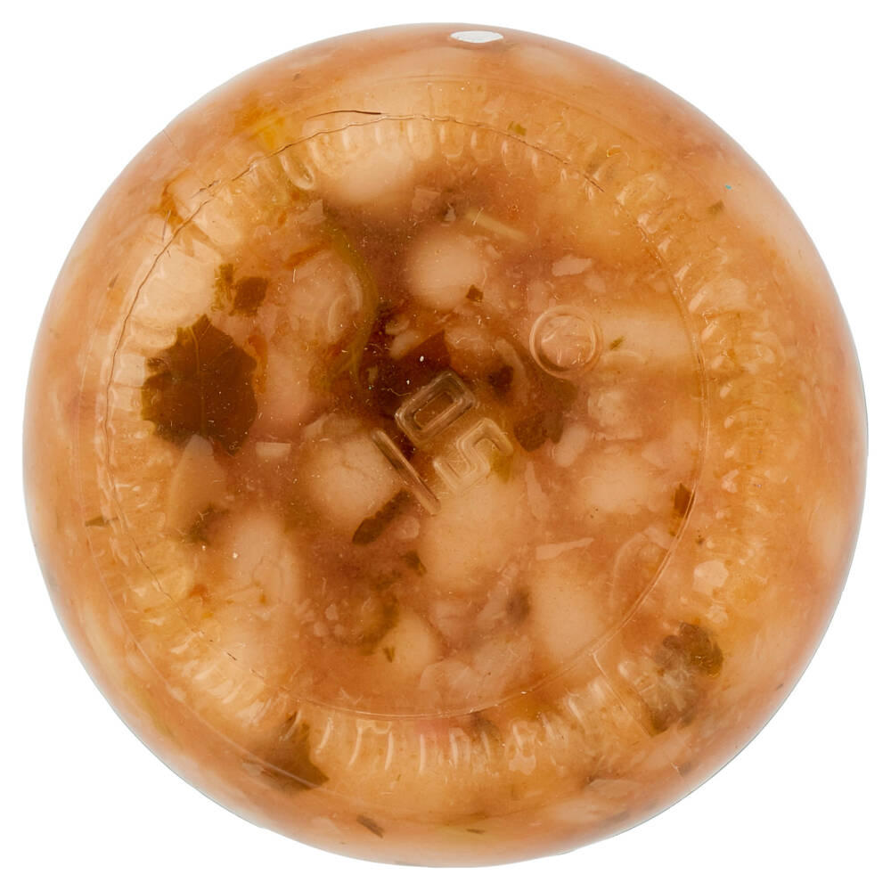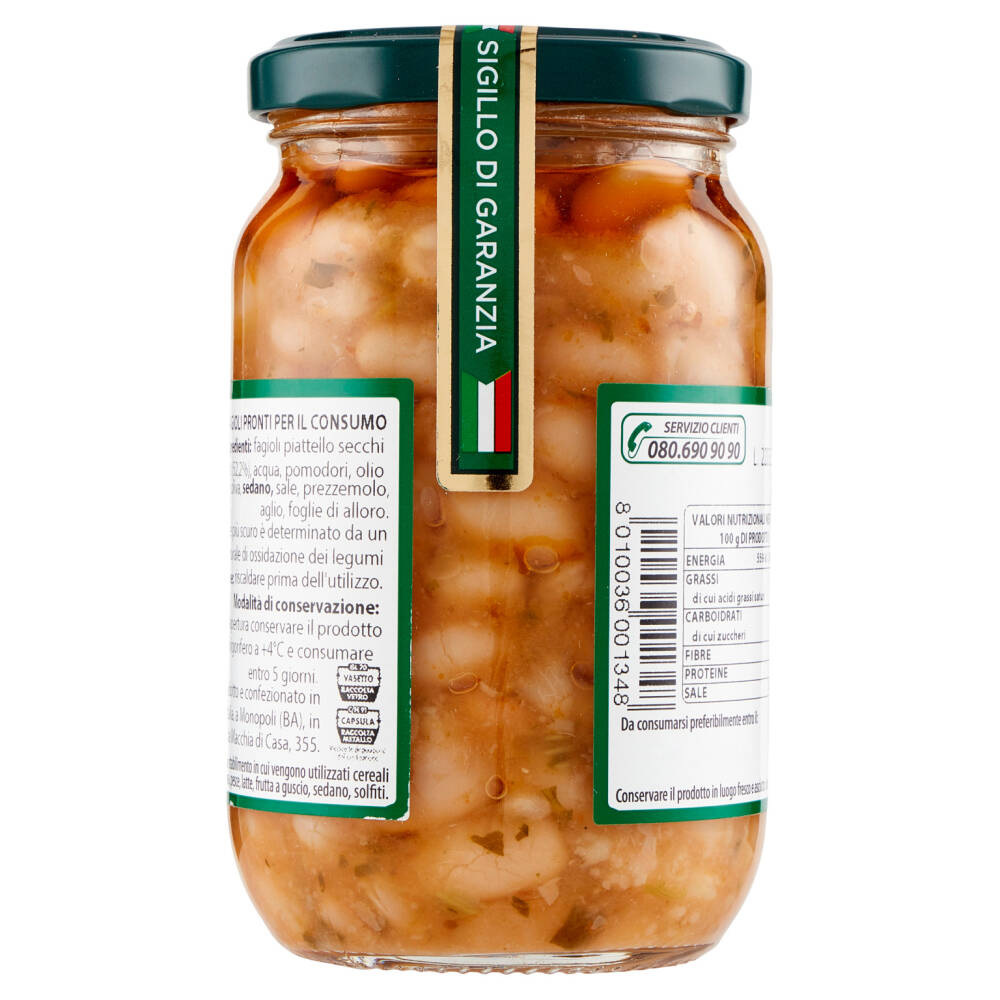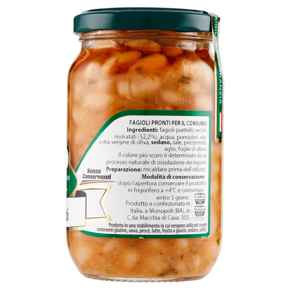 Fagioli piattello secchi reidratati (52,2%) Acqua Pomodori Olio extra vergine di oliva Sedano Sale Prezzemolo Aglio Foglie di alloro Prodotto in uno stabilimento in cui vengono utilizzati cereali contenenti glutine, uova, pesce, latte, frutta a guscio, sedano, solfiti