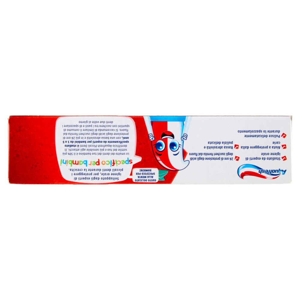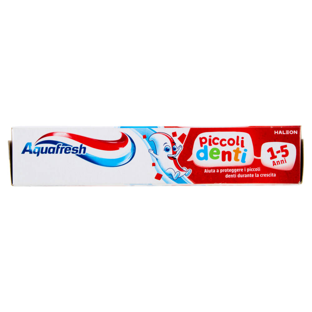 Lo smalto dei denti del tuo bambino è il 50% più sottile del tuo e più sensibile agli attacchi. Il dentifricio Aquafresh Piccoli Denti è studiato specificamente da esperti per bambini da 1 a 5 anni, con una bassa abrasività e in più 24 ore di protezione dagli acidi degli zuccheri fornita dal fluoro. Si raccomanda di limitare il consumo di spuntini con zucchero tra i pasti e di spazzolare i denti due volte al giorno.