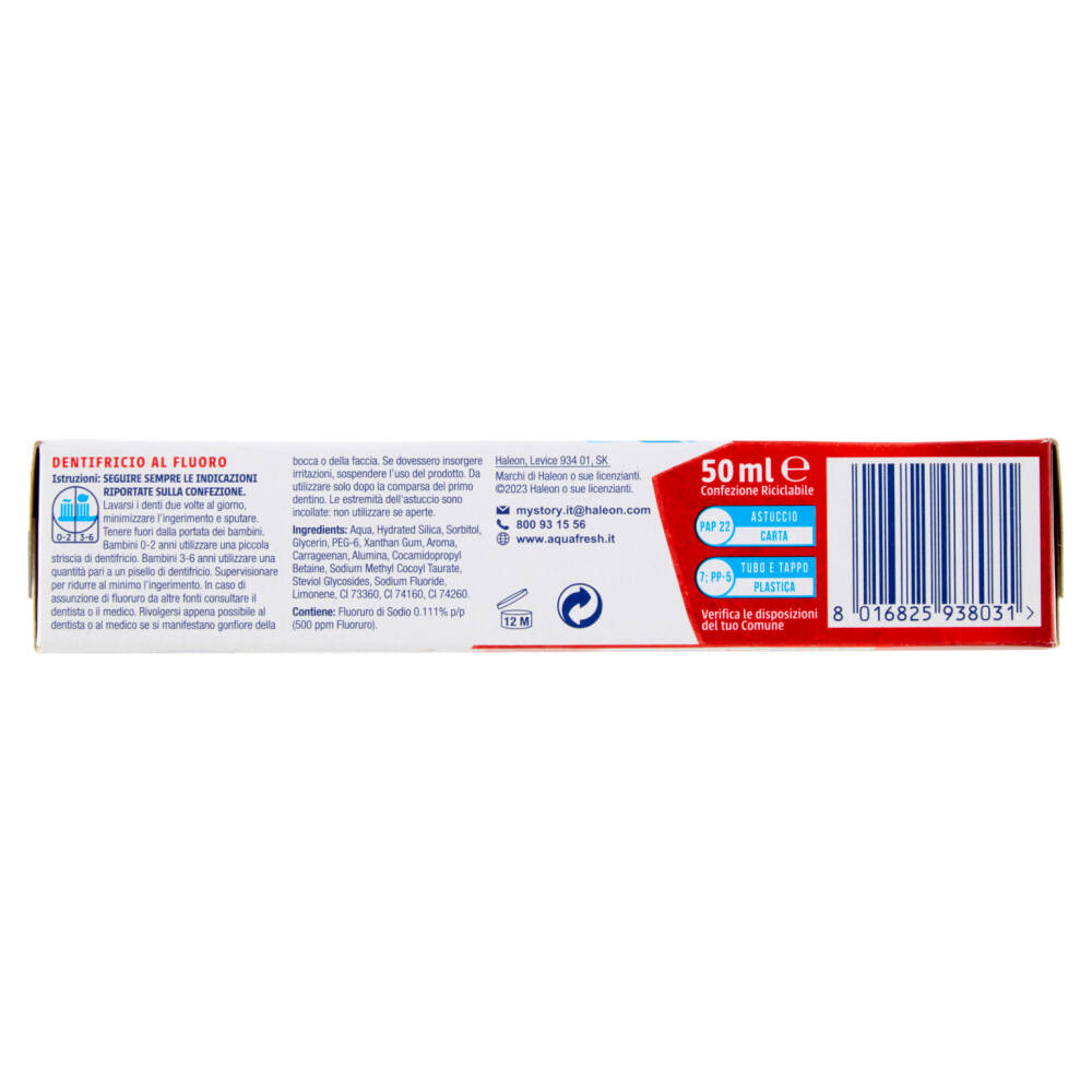 Lavarsi i denti due volte al giorno, minimizzare l'ingerimento e sputare. Tenere fuori dalla portata dei bambini. Bambini 0-2 anni utilizzare una piccola striscia di dentifricio. Bambini 3-6 anni utilizzare una quantità pari a un pisello di dentifricio. Supervisionare per ridurre al minimo l'ingerimento. In caso di assunzione di fluoruro da altre fonti consultare il dentista o il medico. Rivolgersi appena possibile al dentista o al medico se si manifestano gonfiore della bocca o della faccia. Se dovessero insorgere irritazioni, sospendere l'uso del prodotto. Le estremità del cartone sono incollate: non utilizzare se aperte.