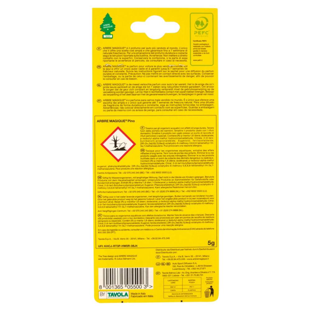 Arbre Magique è il profumo per auto più venduto al mondo. L'unico che ti offre una scelta così ampia e che garantisce fino a 7 settimane di naturale freschezza. Per una emanazione del profumo duratura e costante segui le istruzioni riportate sulla bustina.
