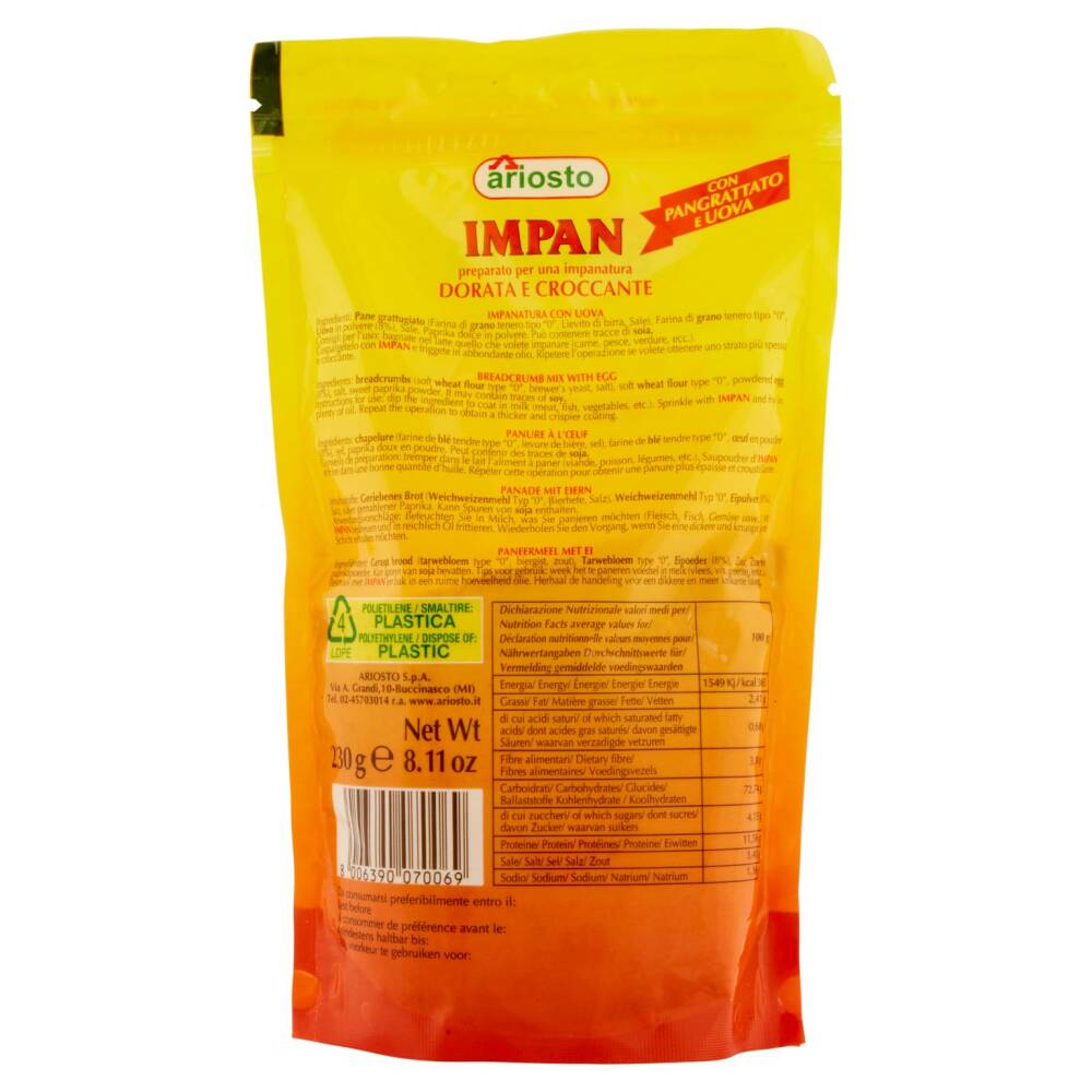 Pane grattugiato (farina di grano tenero tipo "0", lievito di birra, sale) Farina di grano tenero tipo "0" Uovo in polvere (8%) Sale Paprika dolce in polvere Può contenere tracce di soia