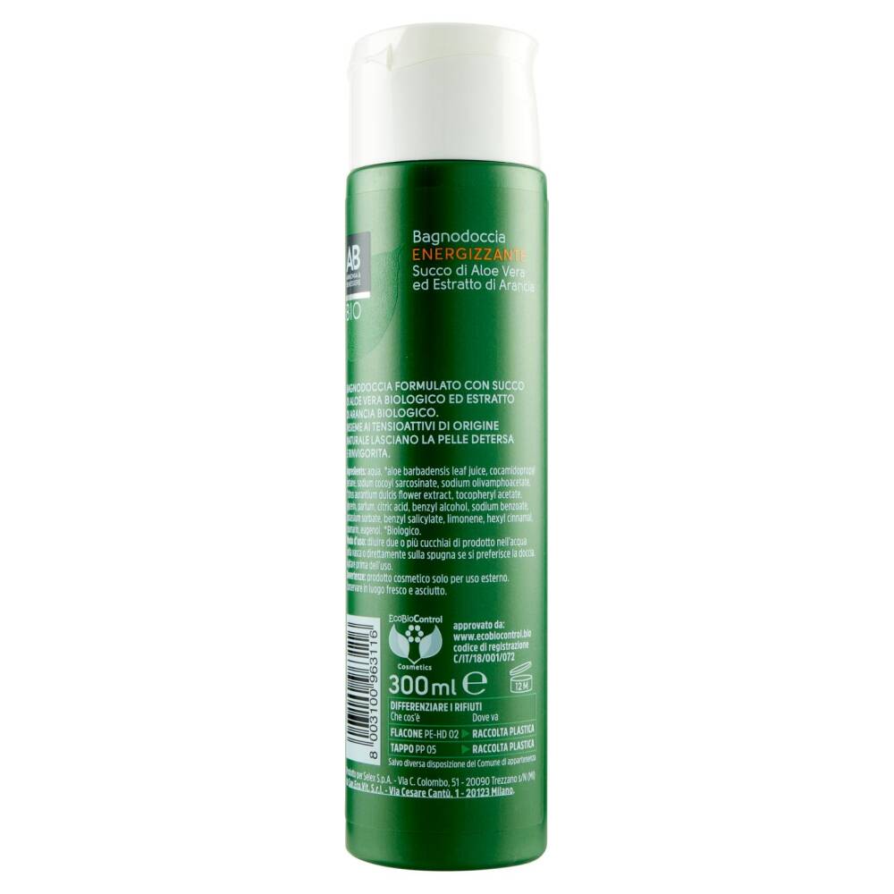 Bagnodoccia formulato con succo di aloe vera biologico ed estratto di arancia biologico.