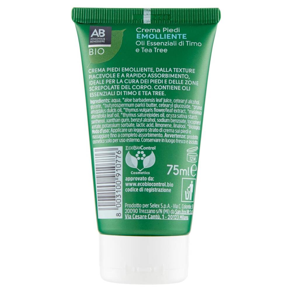 Crema Piedi Emolliente, dalla texture piacevole e a rapido assorbimento, ideale per la cura dei piedi e delle zone screpolate del corpo. Contiene oli essenziali di timo e tea tree.