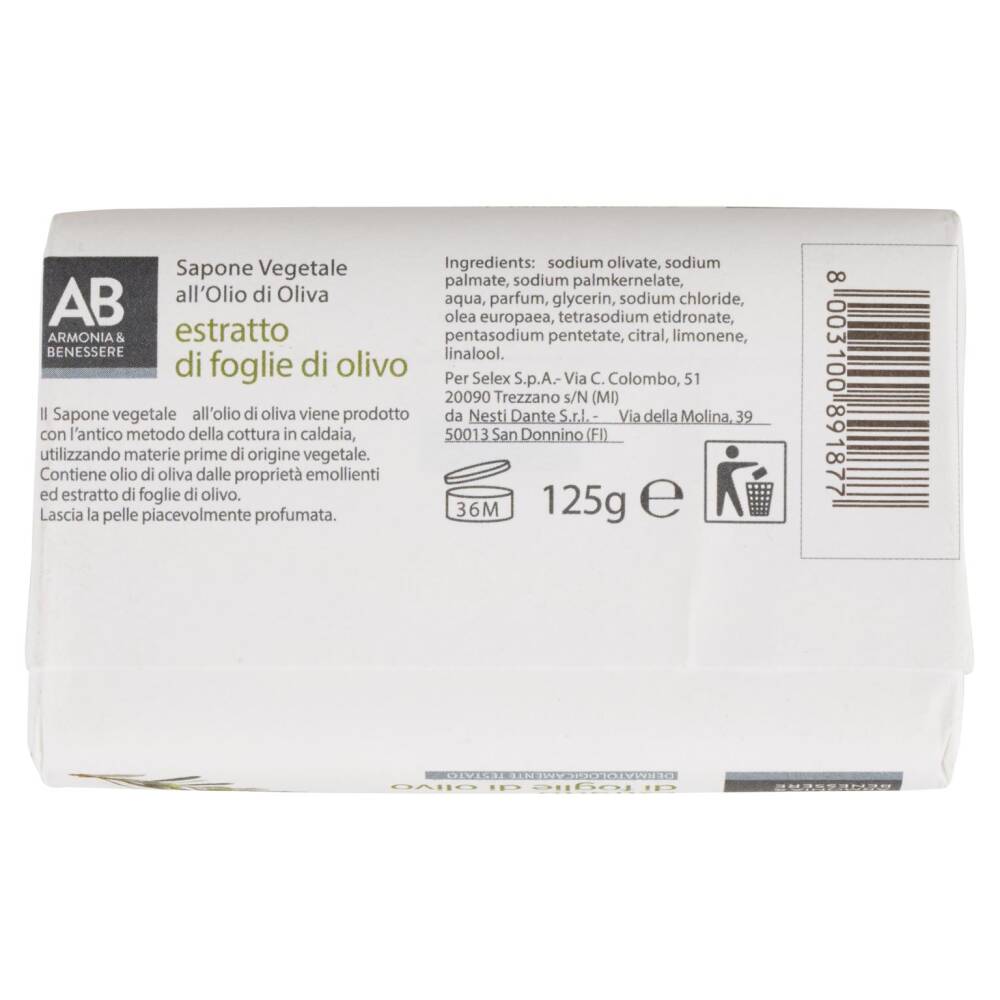Il Sapone vegetale all'olio di oliva viene prodotto con l'antico metodo della cottura in caldaia, utilizzando materie prime di origine vegetale. Contiene olio di oliva dalle proprietà emollienti ed estratto di foglie di olivo.