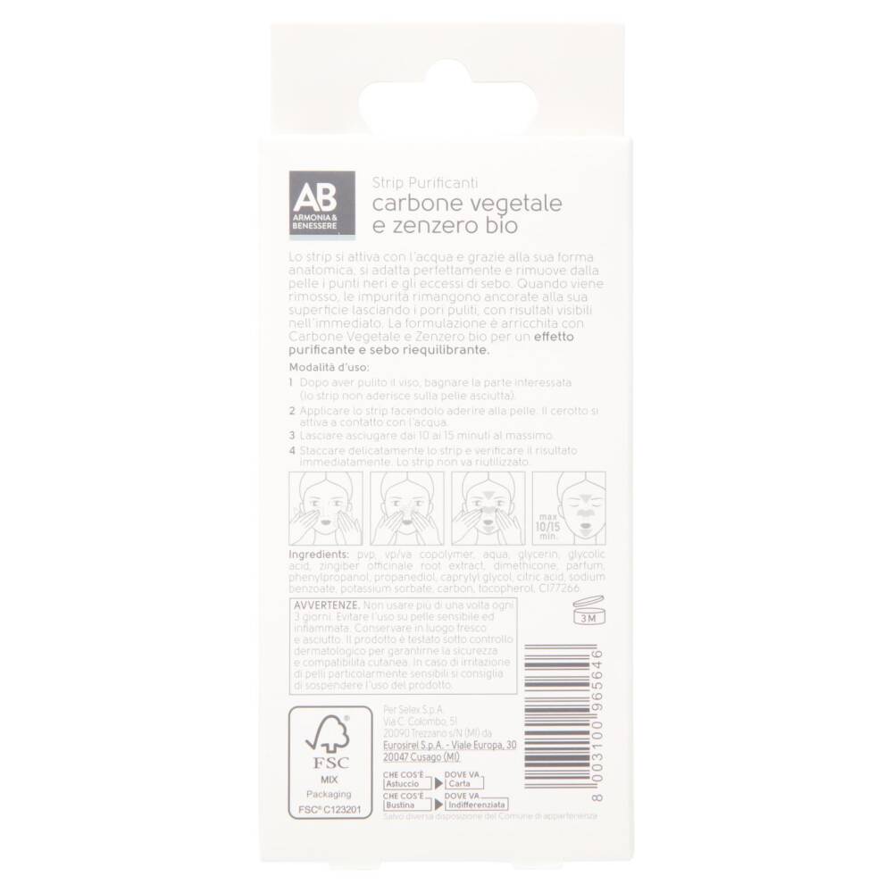 Lo strip si attiva con l'acqua e grazie alla sua forma anatomica, si adatta perfettamente e rimuove dalla pelle i punti neri e gli eccessi di sebo. Quando viene rimosso, le impurità rimangono ancorate alla sua superficie lasciando i pori puliti, con risultati visibili nell'immediato. La formulazione è arricchita con Carbone Vegetale e Zenzero bio per un effetto purificante e sebo riequilibrante.