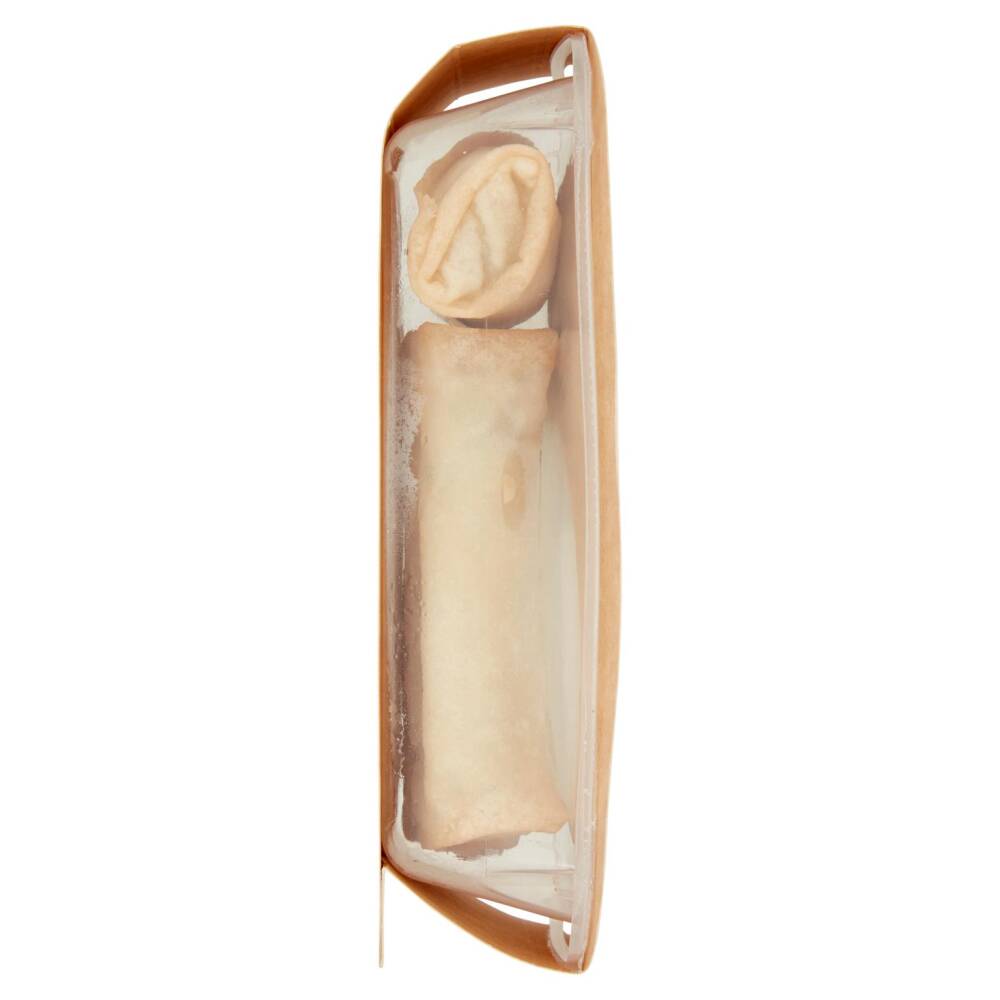 Ripieno (61%): verdure (85%) (cavolo verza, carote, cipolle, erba cipollina), spaghetti di soia (amido di soia, fecola di patate, acqua), olio di girasole, fecola di patate, amido, sale, sakè (acqua, riso, alcol), zucchero, pepe, aromi naturali
