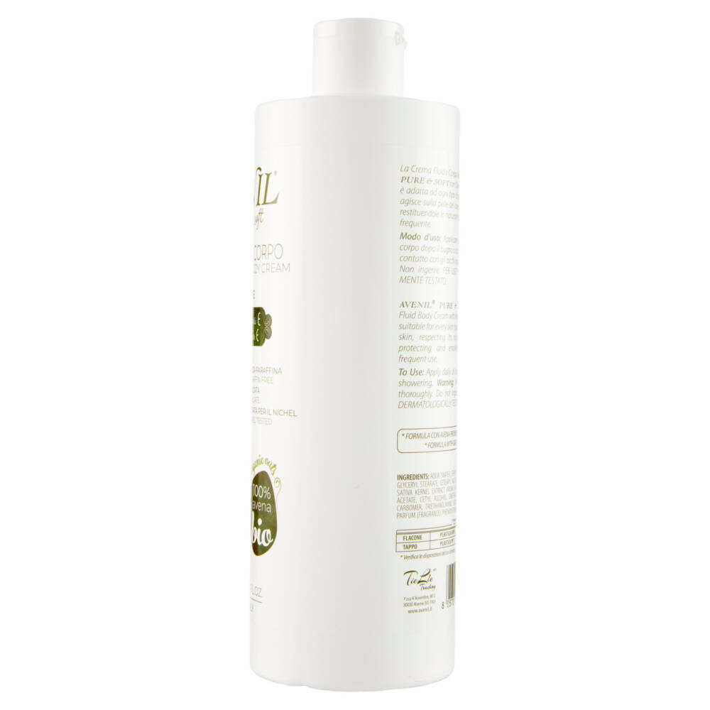 La Crema Fluida Corpo Nutriente Delicata Avenil Pure & Soft con Olio di Argan, Vitamina E e Avena* è adatta ad ogni tipo di pelle. Protettiva ed emolliente agisce sulla pelle del corpo nutrendolo in profondità e restituendole la naturale morbidezza. Adatta ad un uso frequente.
