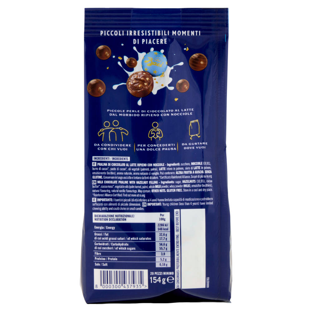 Piccole perle di cioccolato al latte dal morbido ripieno con nocciole