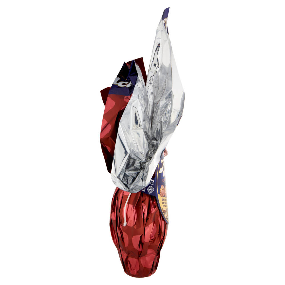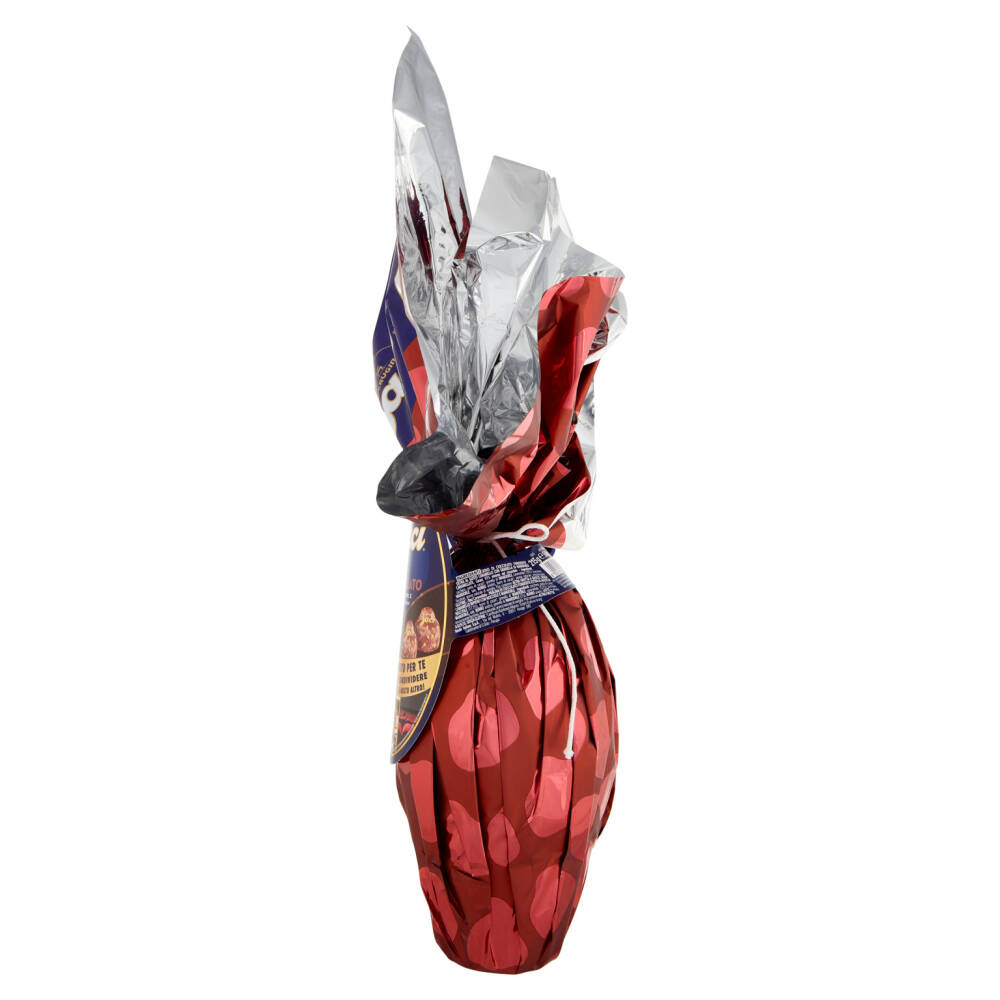 Uovo di cioccolato fondente extra al gusto caramello con granella di mandorle caramellate. Cacao: 51% minimo nel cioccolato