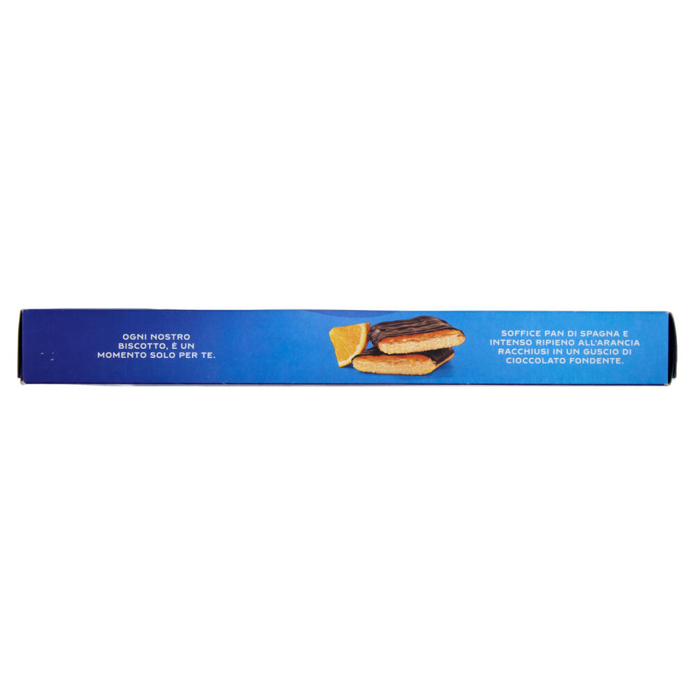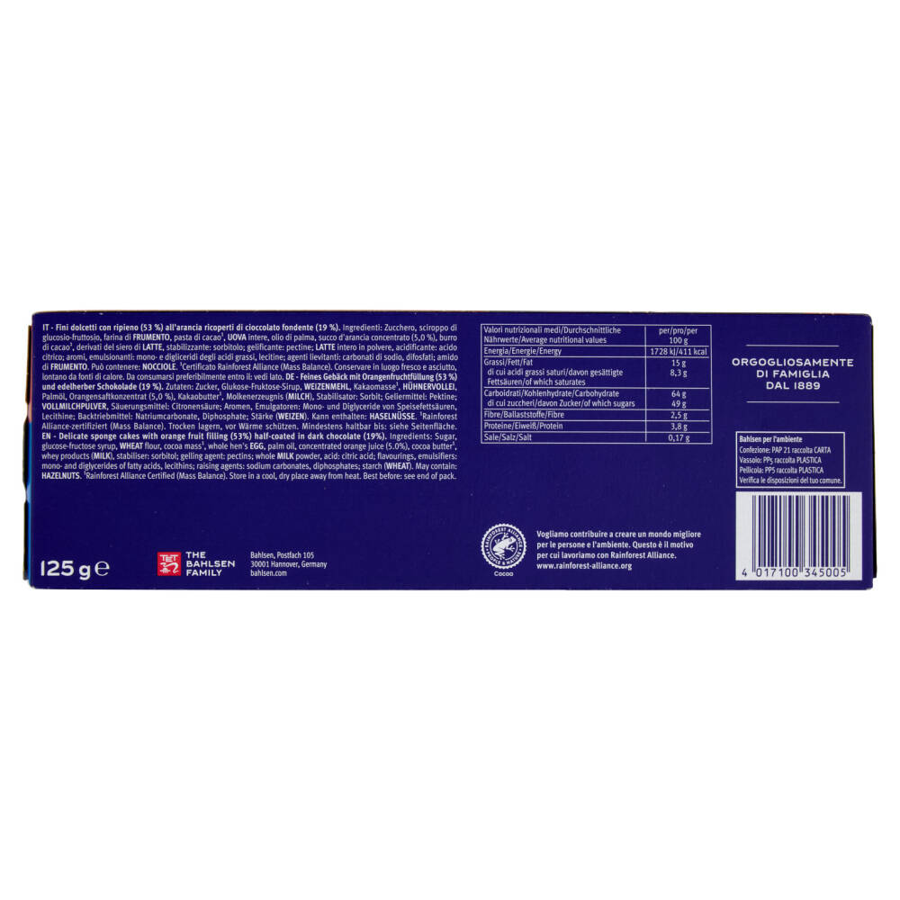 Fini dolcetti con ripieno (53%) all'arancia ricoperti di cioccolato fondente (19%)