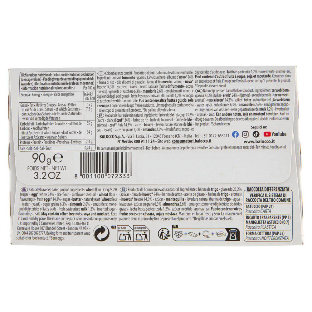 Farina di frumento Glassa 23,2% (zucchero - albume d'uovo* 24% - farina di riso - olio di semi di girasole - farina di frumento - aromi) Uova* fresche 14,3% Zucchero Burro Lievito naturale (farina di frumento - acqua - lievito) Granella di zucchero 6,3% Mandorle 2,6% Emulsionanti: mono-e digliceridi degli acidi grassi Latte fresco pastorizzato alta qualità 1,2% Sciroppo di zucchero invertito Aromi Sale Può contenere altra frutta a guscio, soia e senape *Da galline allevate a terra