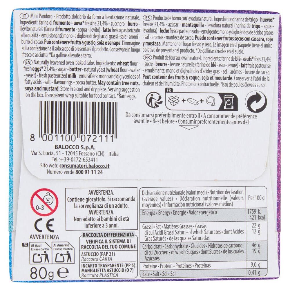 Farina di frumento Uova* fresche 21,4% Zucchero Burro Lievito naturale (farina di frumento - acqua - lievito) Latte fresco pastorizzato alta qualità Emulsionanti: mono- e digliceridi degli acidi grassi Sale Aromi Burro di cacao Può contenere frutta a guscio, soia e senape *Da galline allevate a terra