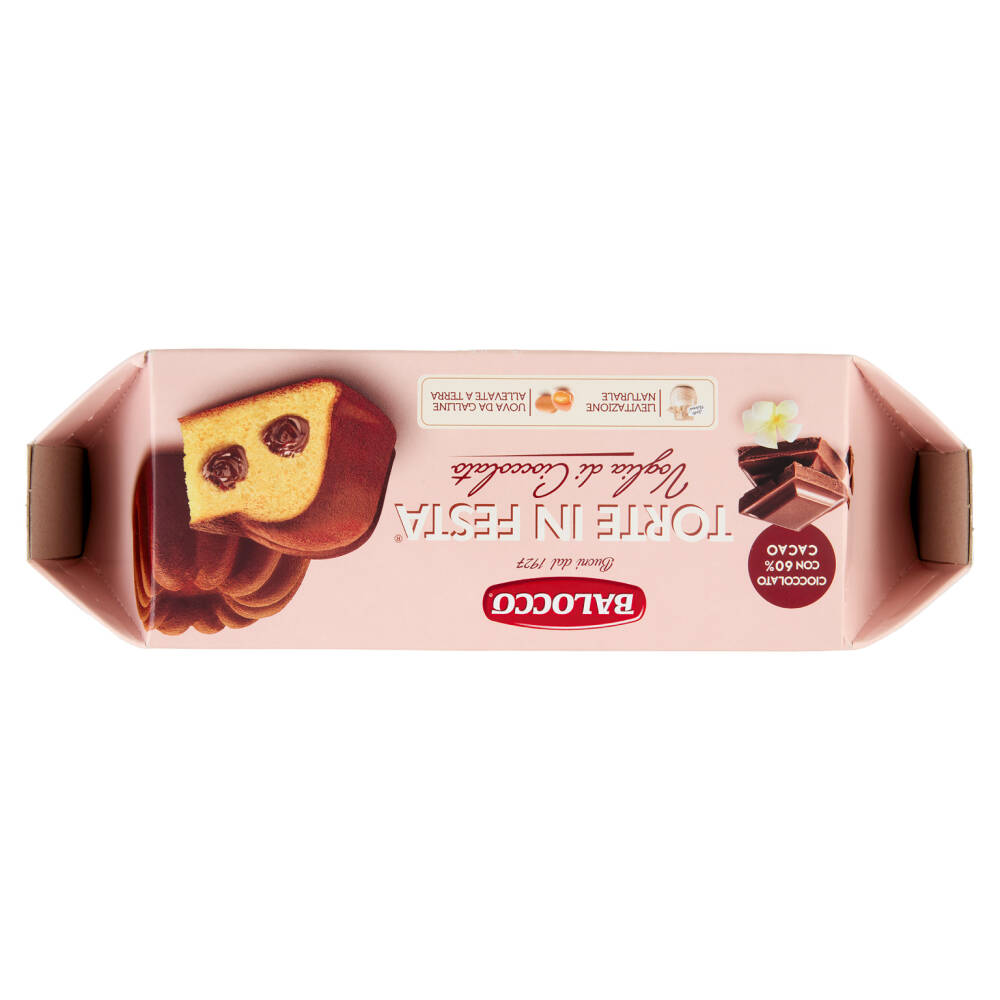 Prodotto dolciario da forno a lievitazione naturale farcito con crema al cioccolato (17,5%), con bustina di preparato al cacao magro zuccherato per decorazione (2,5%)