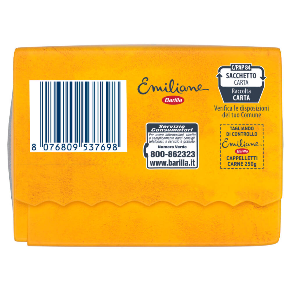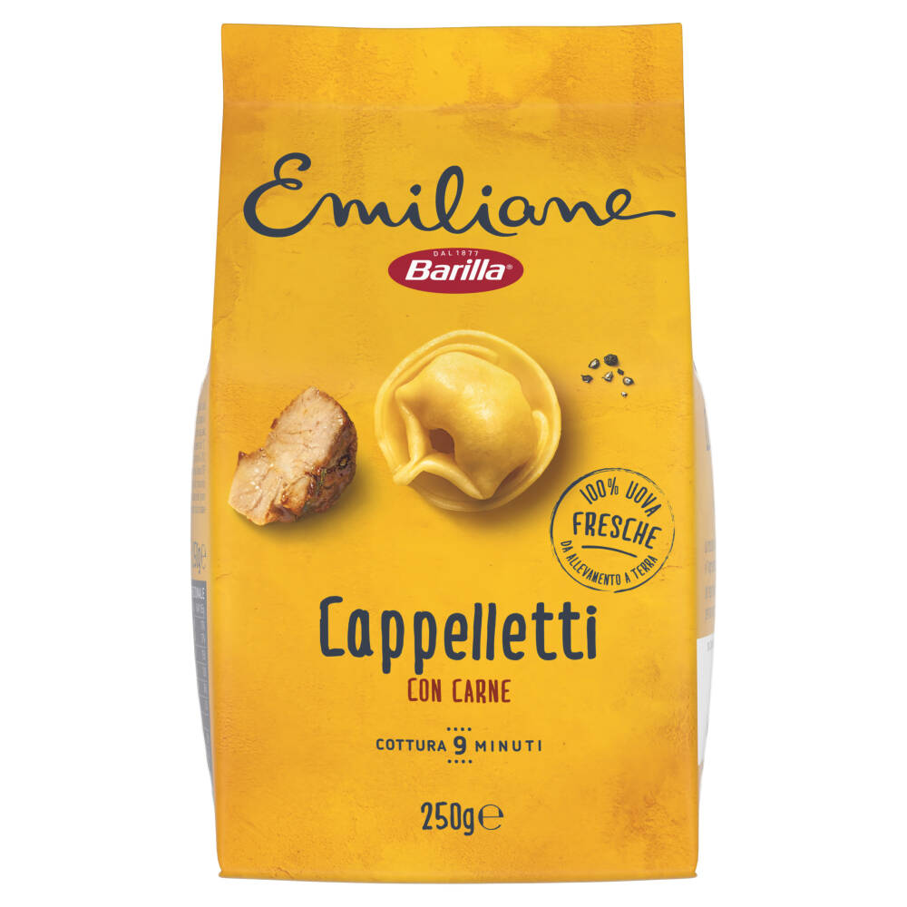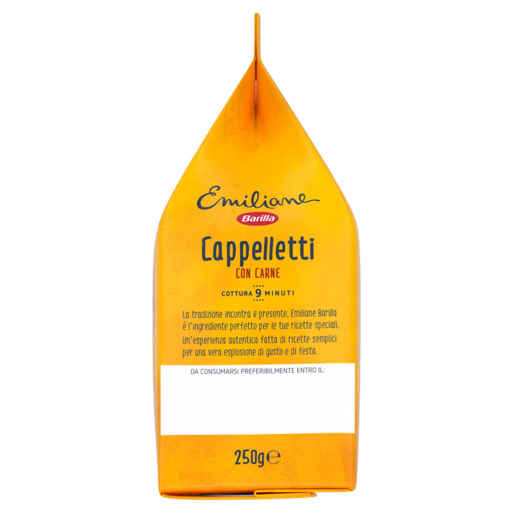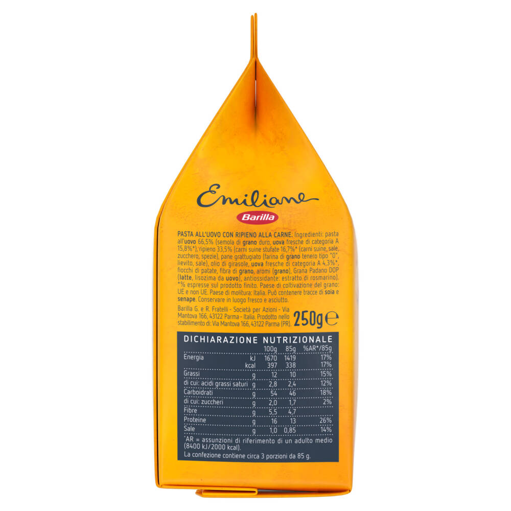 Ripieno 33,5% (carni suine stufate 16,7%* (carni suine, sale, zucchero, spezie), pane grattugiato (farina di grano tenero tipo "0", lievito, sale), olio di girasole, uova fresche di categoria A 4,3%*, fiocchi di patate, fibra di grano, aromi (grano), Grana Padano DOP (latte, lisozima da uovo), antiossidante: estratto di rosmarino)