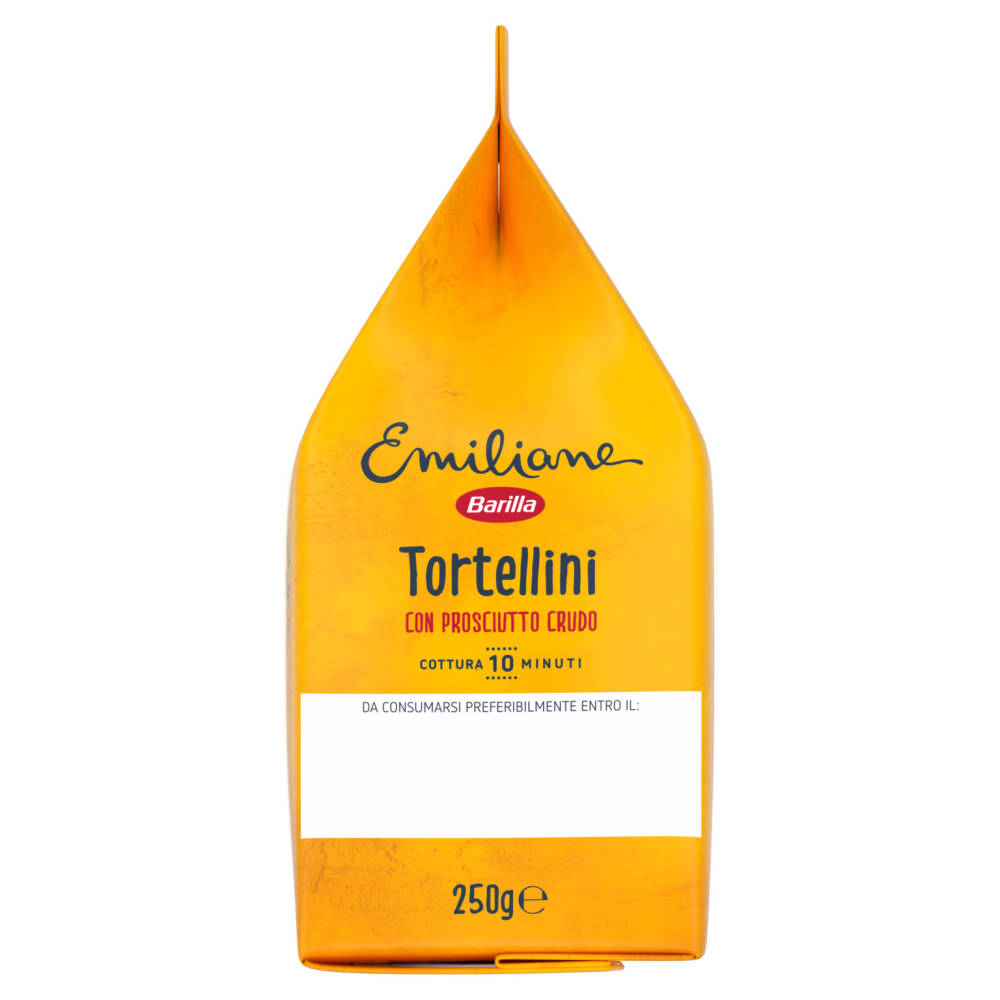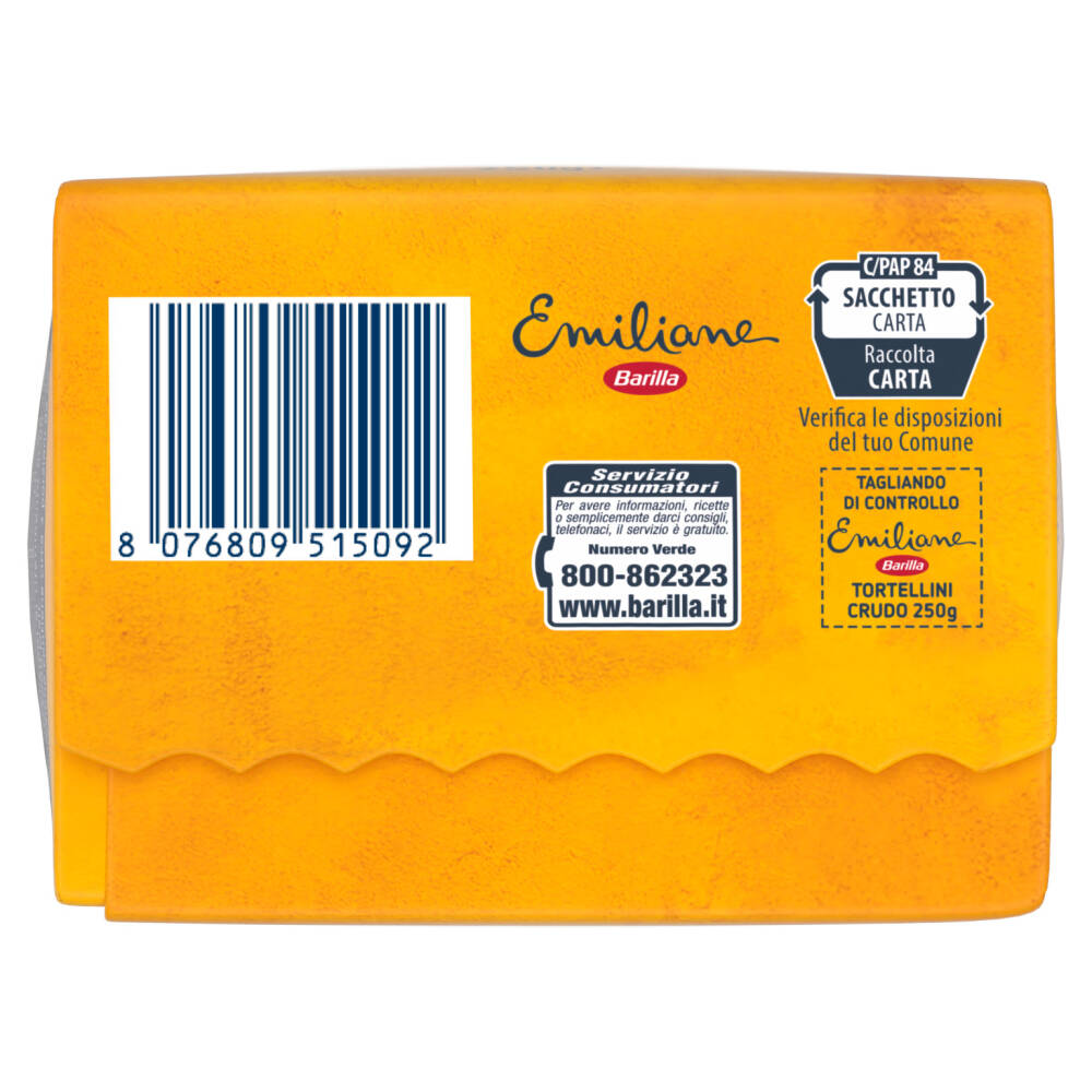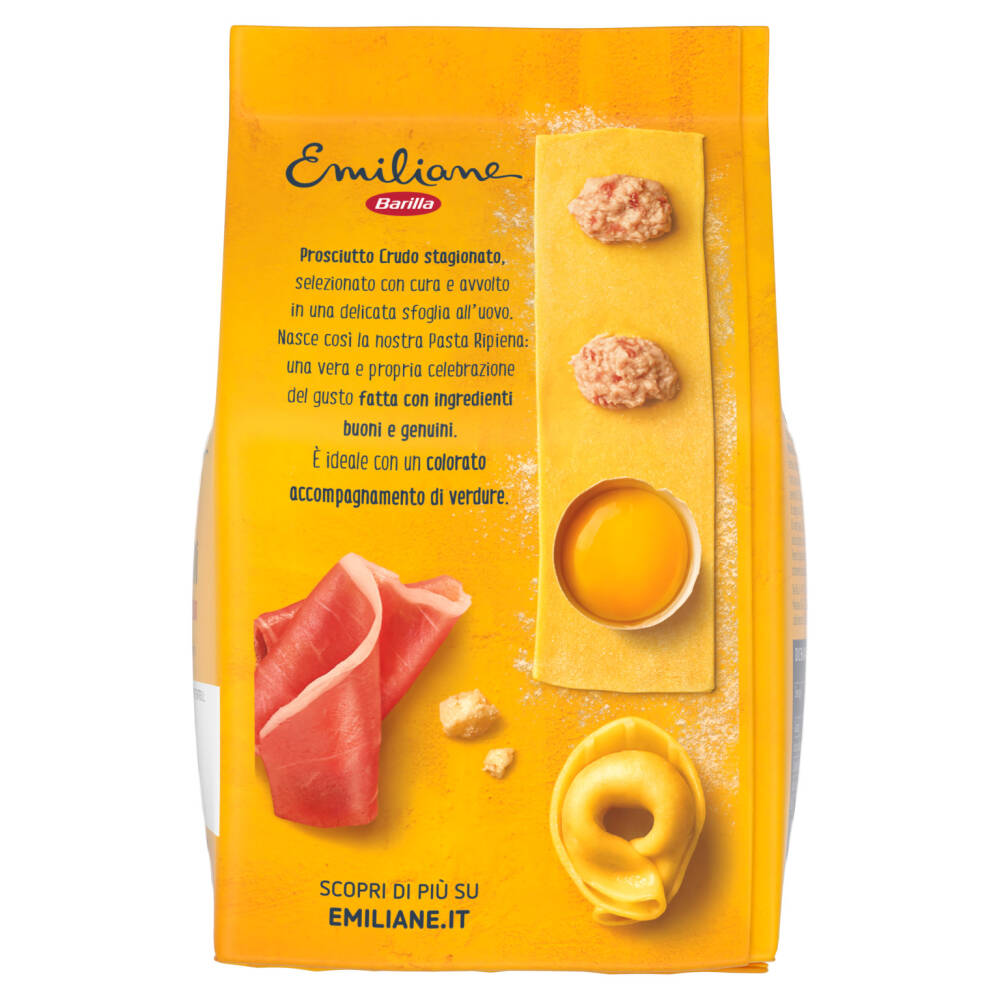 Ripieno 34% (carni suine stufate 15,3%* (carni suine, sale, zucchero, spezie), pane grattugiato (farina di grano tenero tipo "0", lievito, sale), olio di girasole, fiocchi di patate, uova fresche di categoria A 2,9%*, aromi (latte, grano), prosciutto crudo 1,3%* (cosce di suino, sale), Grana Padano DOP 0,8%* (latte, lisozima da uovo), sale, antiossidante: estratto di rosmarino)