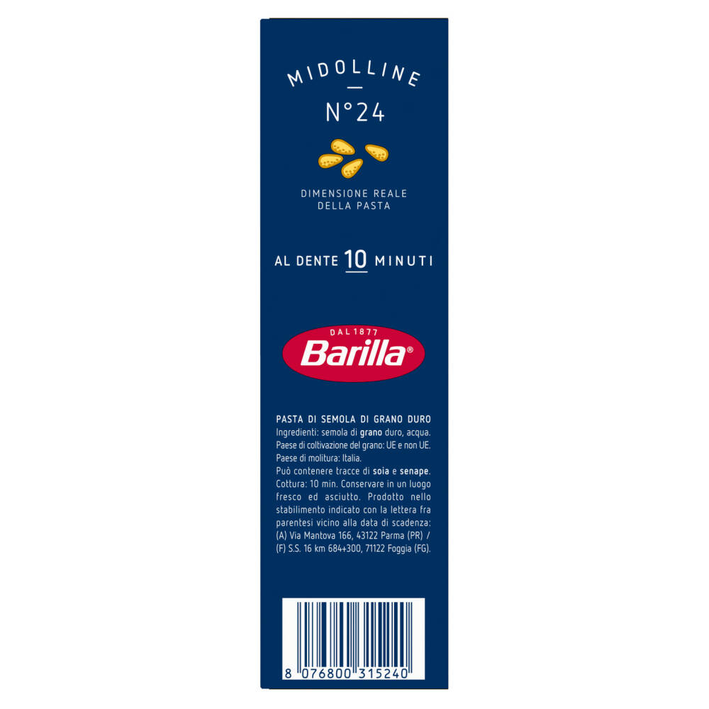 Barilla G. e R. Fratelli - Società per Azioni Via Mantova, 166 43122 Parma Italia Prodotto nello stabilimento indicato con la lettera fra parentesi vicino alla data di scadenza: (A) Via Mantova, 166, 43122 Parma (PR) (F) S.S. 16 km 684+300, 71122 Foggia (FG)