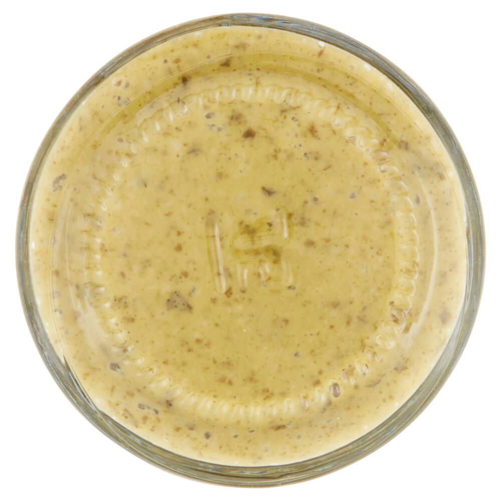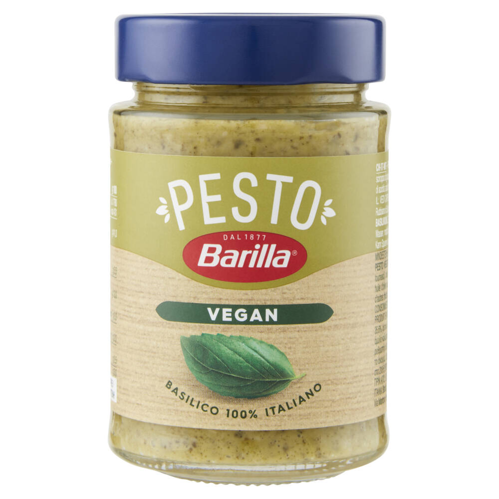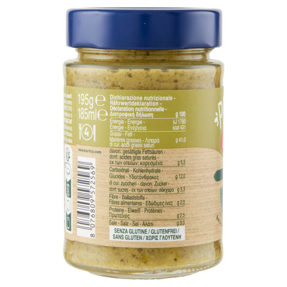 Basilico 35,6% Olio di girasole Anacardi Sciroppo di glucosio Acqua Amido modificato di mais Sale Aromi naturali Olio extravergine di oliva Zucchero Correttore di acidità: acido lattico Può contenere tracce di altra frutta a guscio
