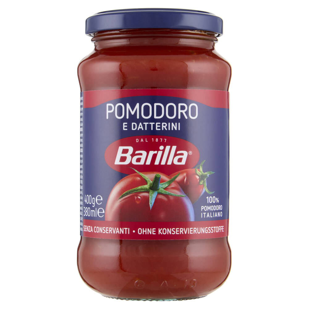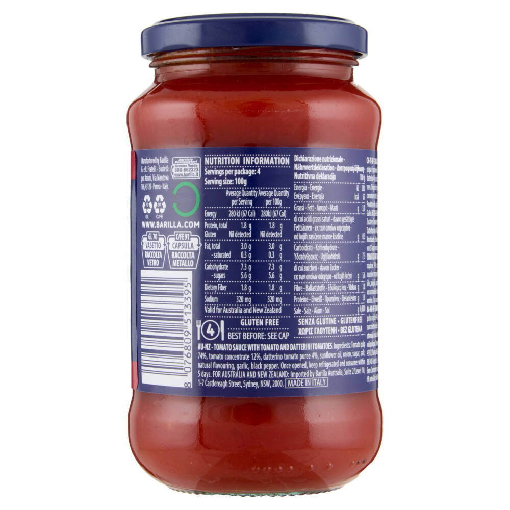 Polpa di pomodoro 74% Concentrato di pomodoro 12% Passata di pomodoro datterino 4% Olio di girasole Cipolla Zucchero Sale Aroma naturale Aglio Pepe nero