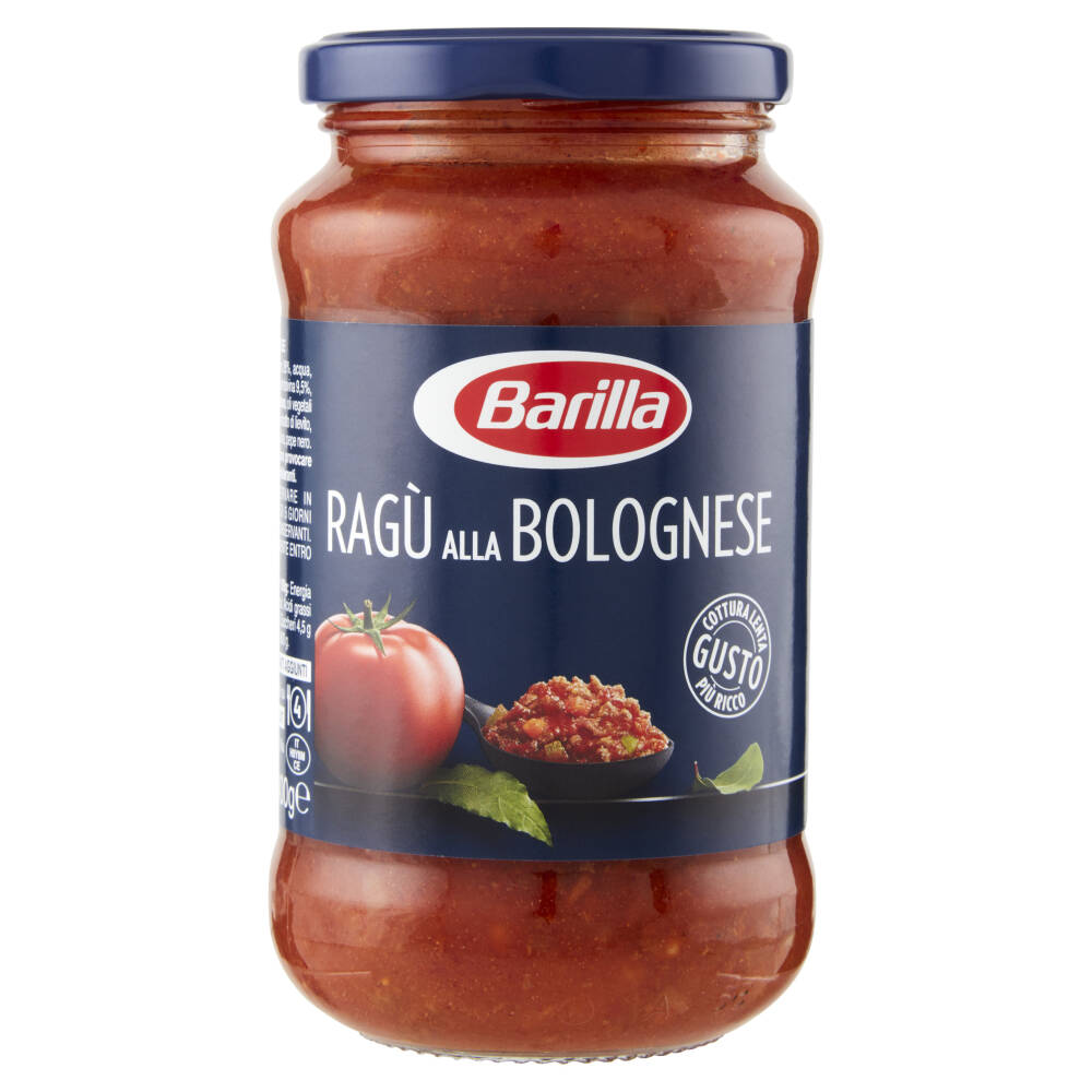 Polpa di pomodoro 28% Acqua Concentrato di pomodoro 16,5% Carne bovina 9,5% Carne suina 9,5% Cipolla Carote Sedano Oli vegetali (oliva, girasole) Amido di mais Sale Estratto di lievito Zucchero Alloro 0,06% Estratto di salvia Pepe nero
