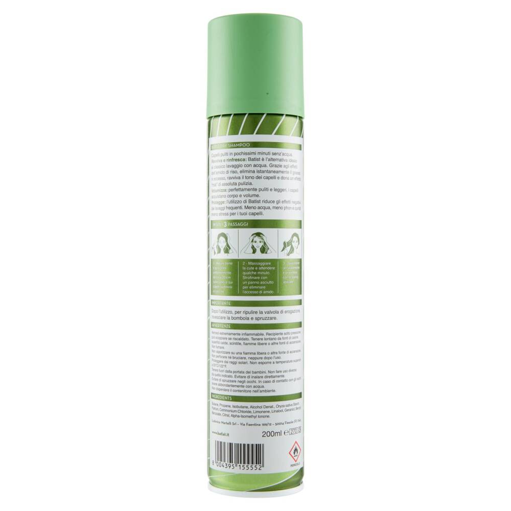 Ravviva e rinfresca: Batist è l'alternativa ideale al classico lavaggio con acqua. Grazie agli effetti dell'amido di riso, elimina istantaneamente il grasso in eccesso, ravviva il tono dei capelli e dona un effetto "mat" di assoluta pulizia.