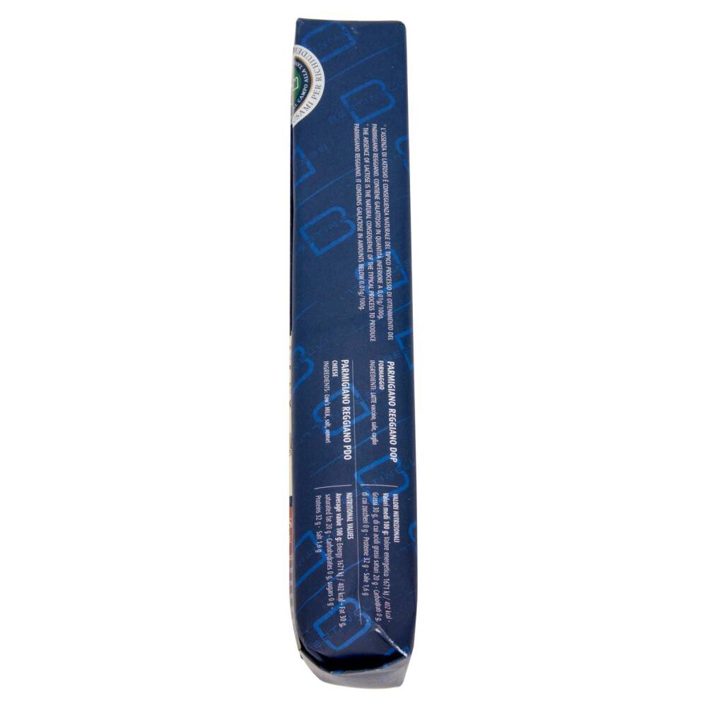 Naturalmente privo di lattosio* *L'assenza di lattosio è conseguenza naturale del tipico processo di ottenimento del Parmigiano Reggiano. Contiene galattosio in quantità inferiore a 0,01g/100g