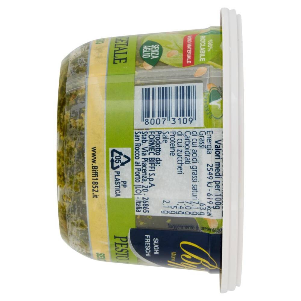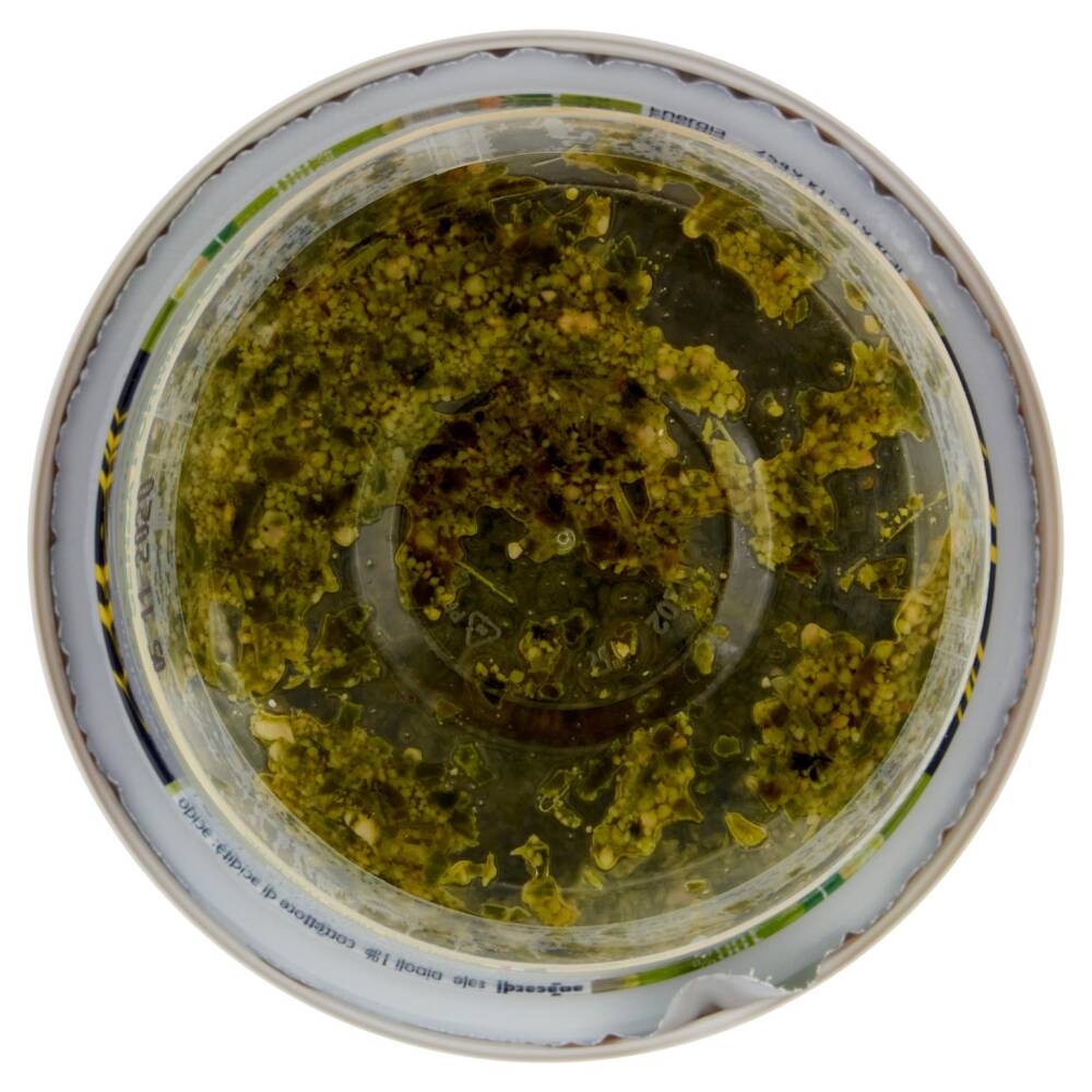Olio di semi di girasole Basilico 22% Anacardi Sale Pinoli 1% Correttore di acidità: acido lattico (vegetale) Antiossidante: acido ascorbico Conservante: sorbato di potassio Può contenere tracce di altra frutta a guscio, arachidi e soia Può contenere eccezionalmente frammenti di guscio