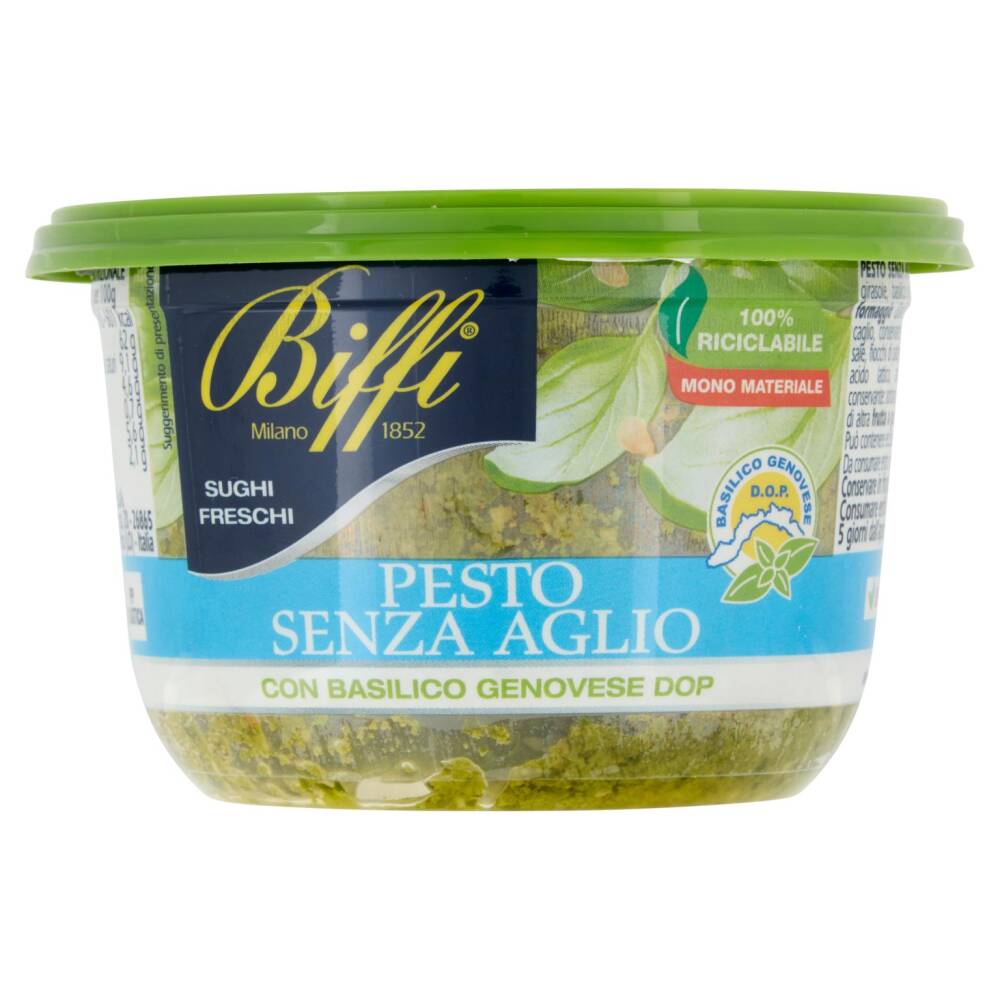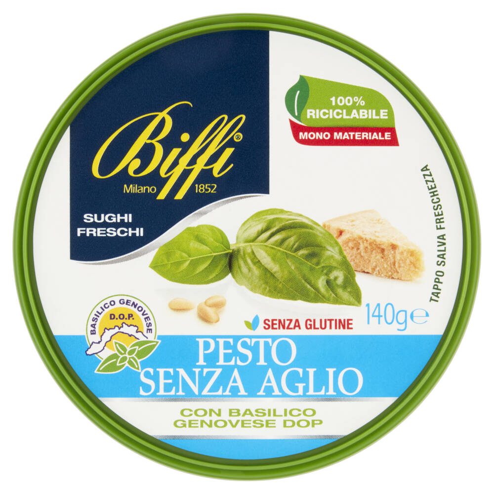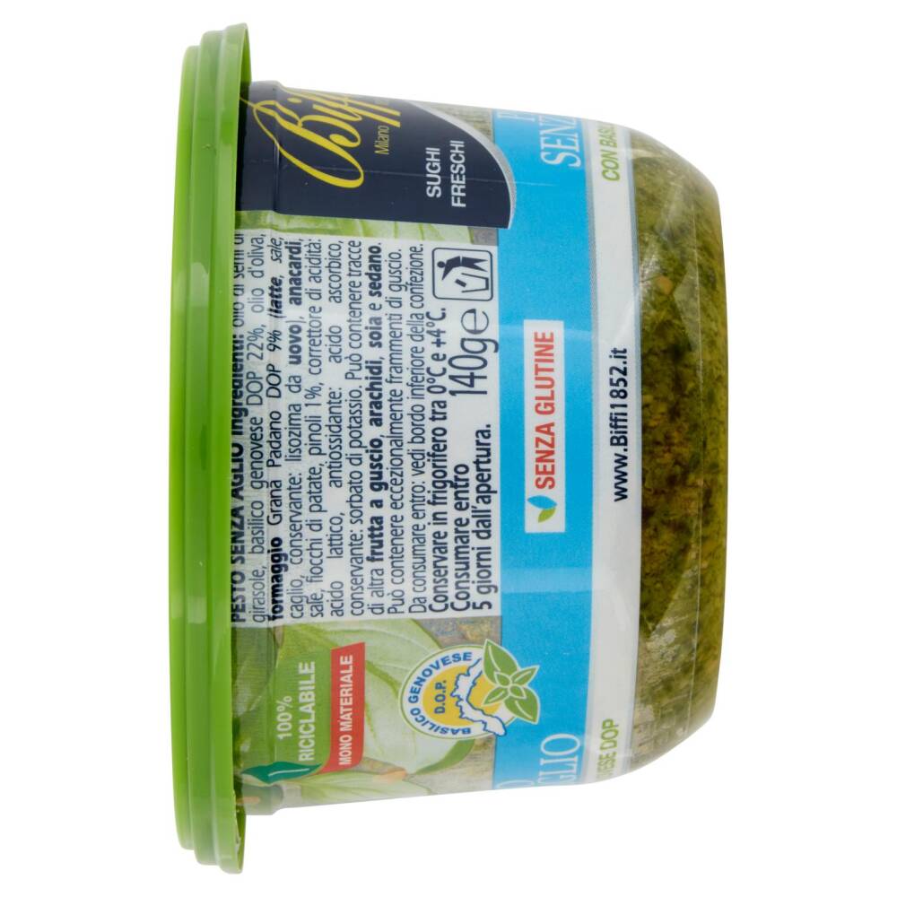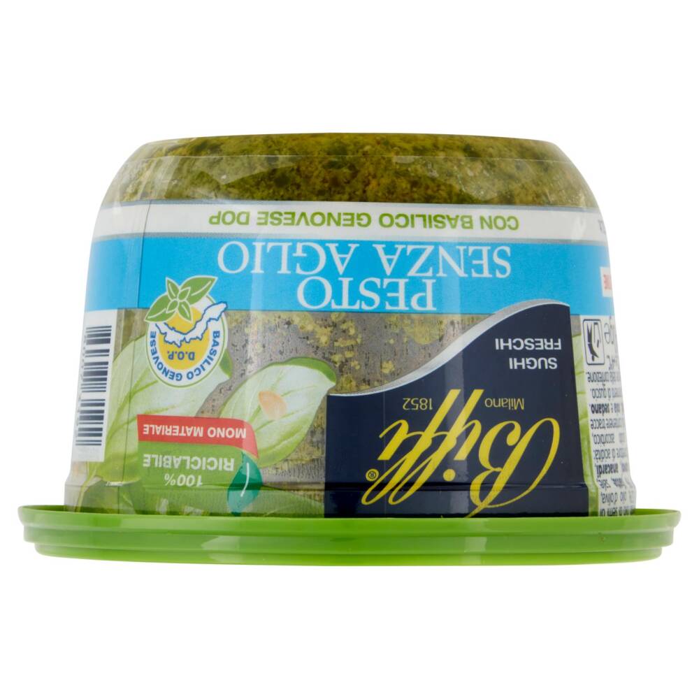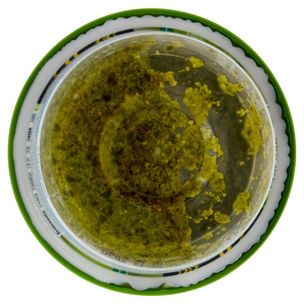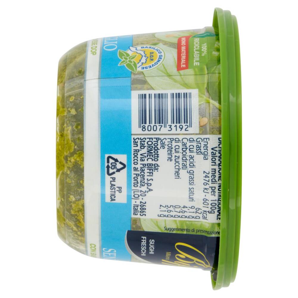 Olio di semi di girasole Basilico genovese DOP 22% Olio d'oliva Formaggio Grana Padano DOP 9% (latte, sale, caglio, conservante: lisozima da uovo) Anacardi Sale Fiocchi di patate Pinoli 1% Correttore di acidità: acido lattico Antiossidante: acido ascorbico Conservante: sorbato di potassio Può contenere tracce di altra frutta a guscio, arachidi, soia e sedano Può contenere eccezionalmente frammenti di guscio