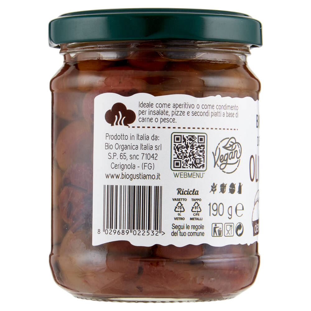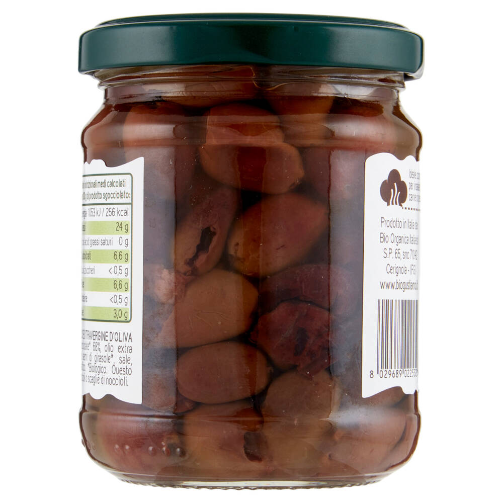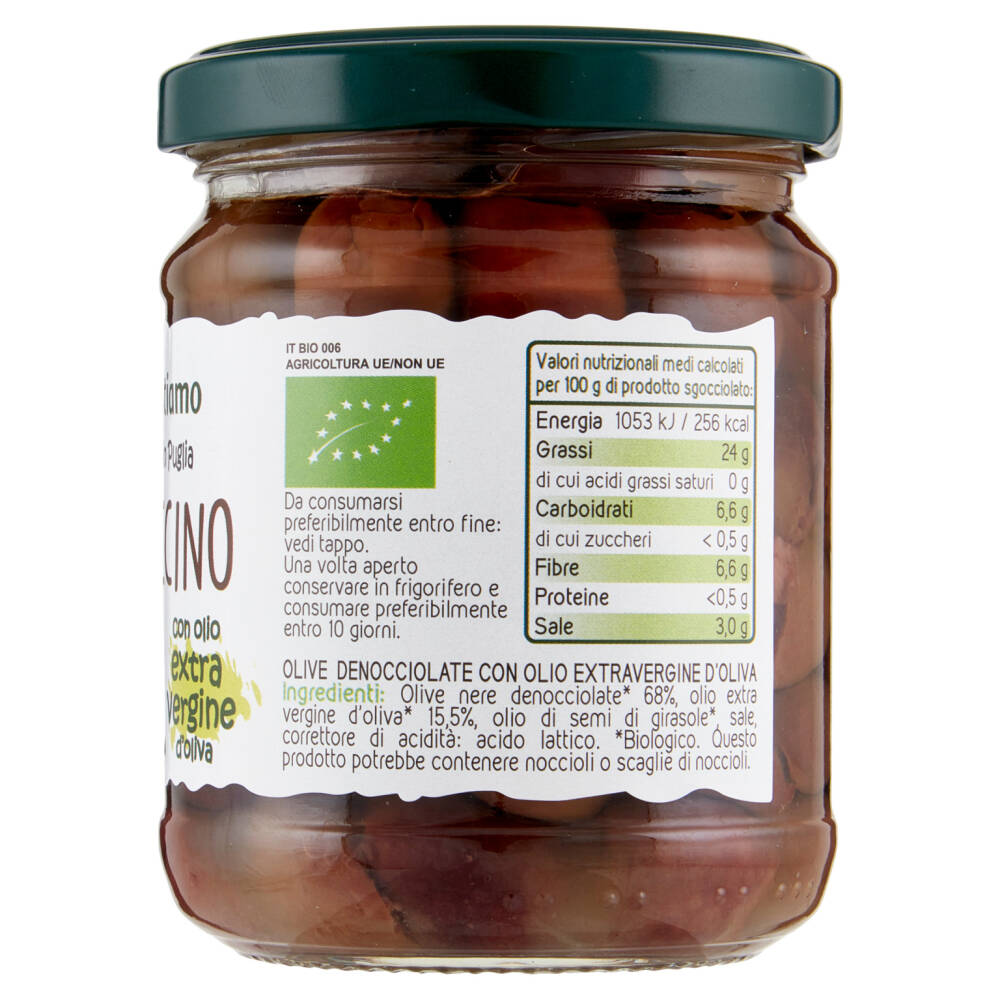 Olive nere denocciolate* 68% Olio extra vergine d'oliva* 15,5% Olio di semi di girasole* Sale Correttore di acidità: acido lattico *Biologico Questo prodotto potrebbe contenere noccioli o scaglie di noccioli