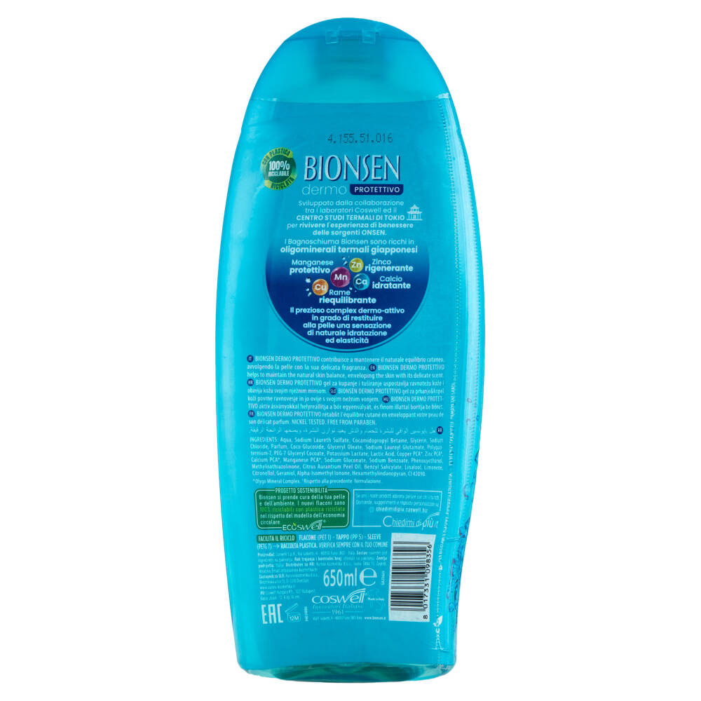 Bionsen Dermo Protettivo contribuisce a mantenere il naturale equilibrio cutaneo, avvolgendo la pelle con la sua delicata fragranza.