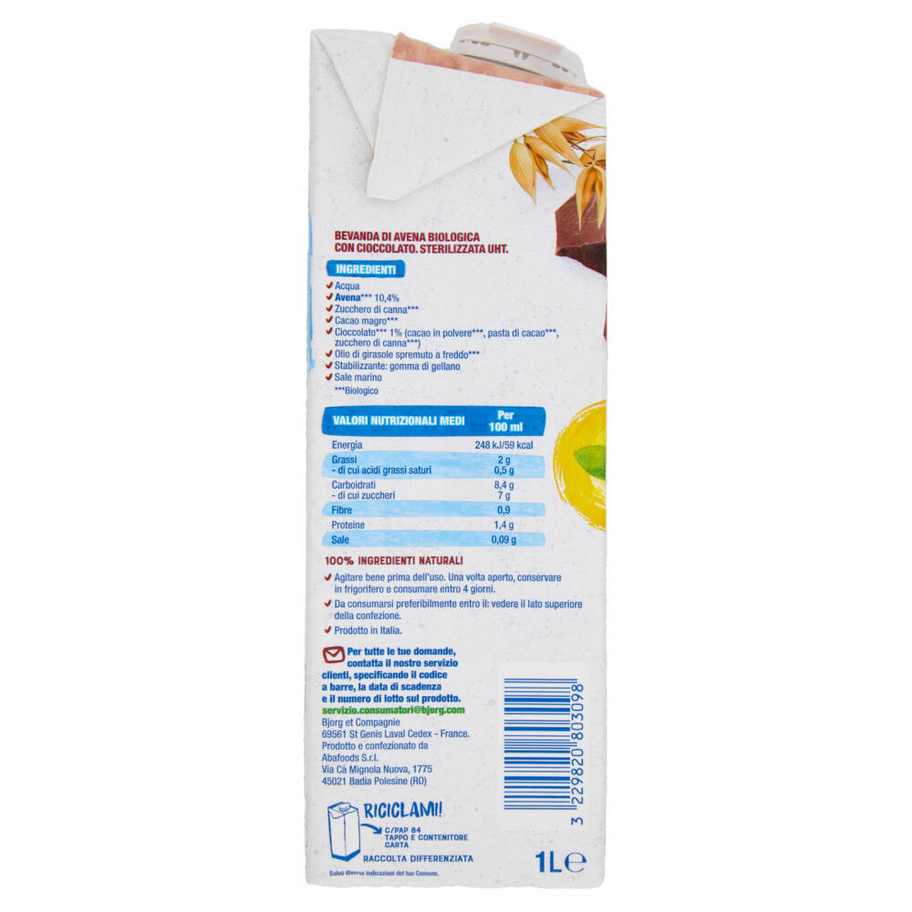 Bevanda di avena biologica con cioccolato. Sterilizzata UHT
