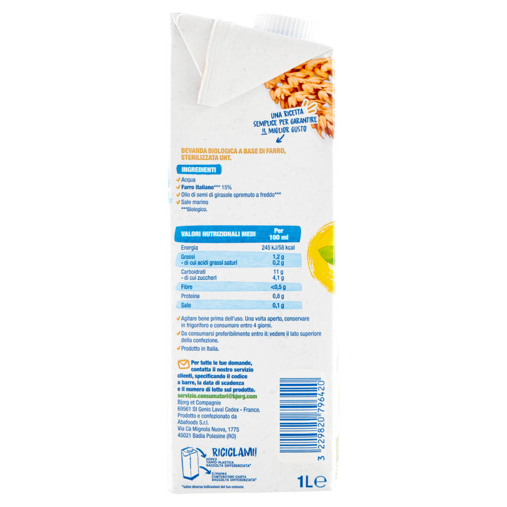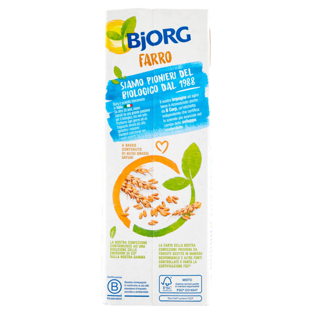 Farro dalle nostre terre 100% Vegetale* Senza zuccheri aggiunti** Bio Prodotto in Italia Tappo fabbricato a partire da canna da zucchero - Risorsa rinnovabile *100% degli ingredienti agricoli di origine vegetale **Contiene naturalmente zuccheri