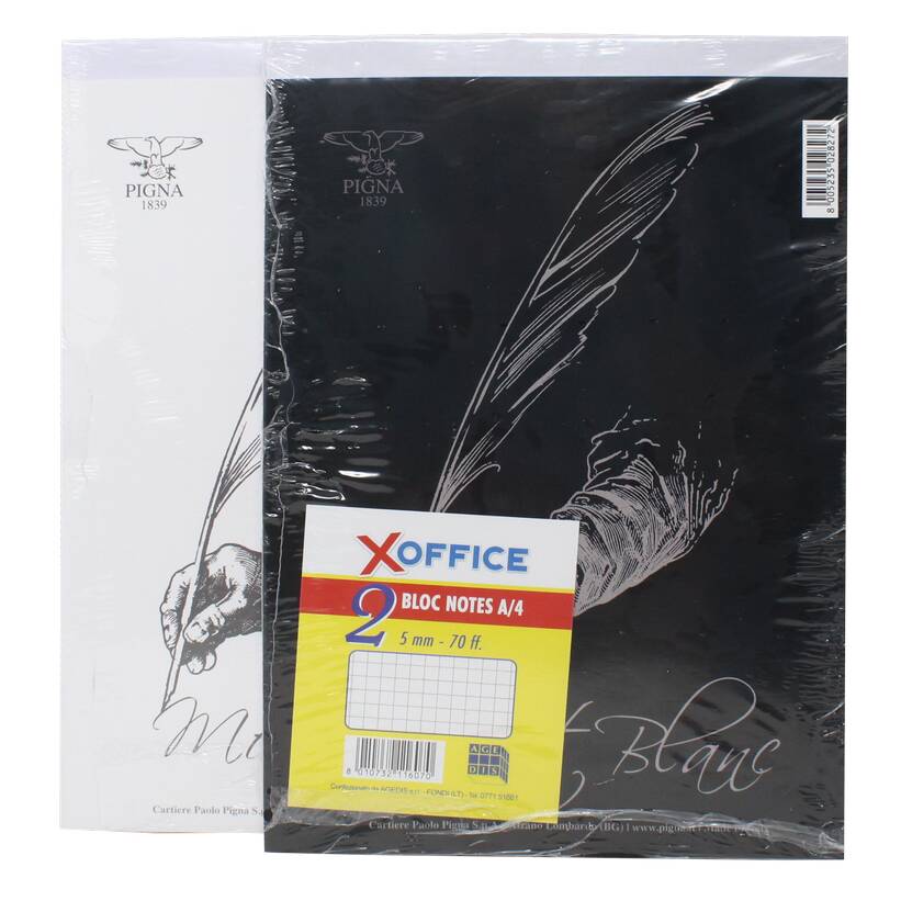 Bloc notes pigna a4 a quadretti da 5mm xoffice, confezione da 2pz