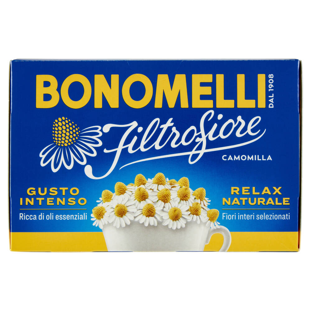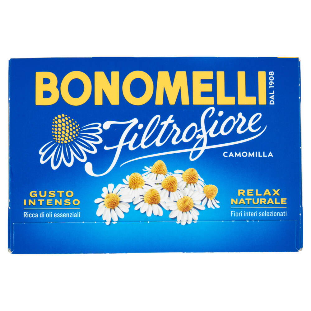 Filtrofiore Bonomelli contiene fiori interi di camomilla ricchi di oli essenziali e principi attivi, selezionati con cura per offrirti una bevanda dal profumo intenso e dal sapore inconfondibile.