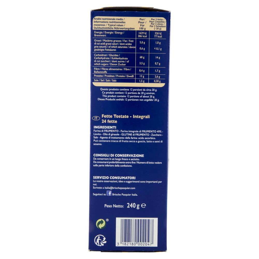 | Analisi nutrizionale media Per 100 g | Per 2 fette (≈20 g) | |