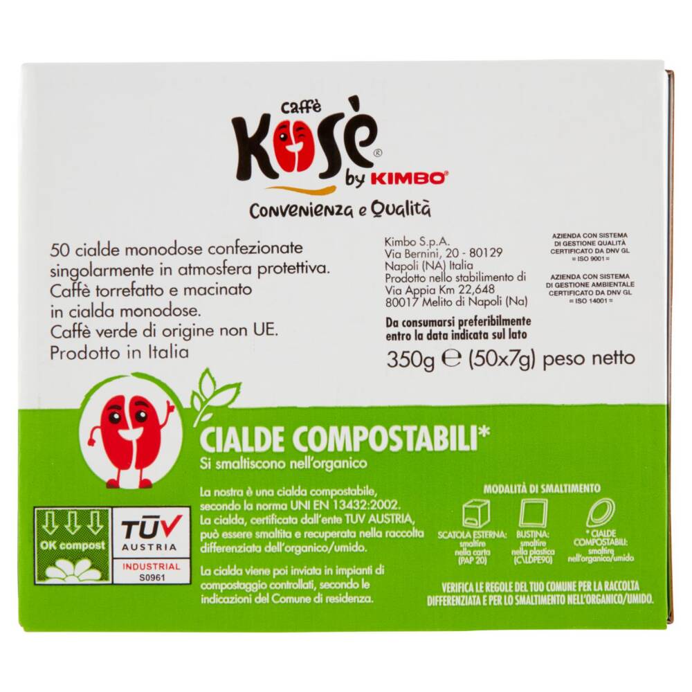 50 Cialde monodose confezionate singolarmente in atmosfera protettiva. Caffè torrefatto e macinato in cialda monodose
